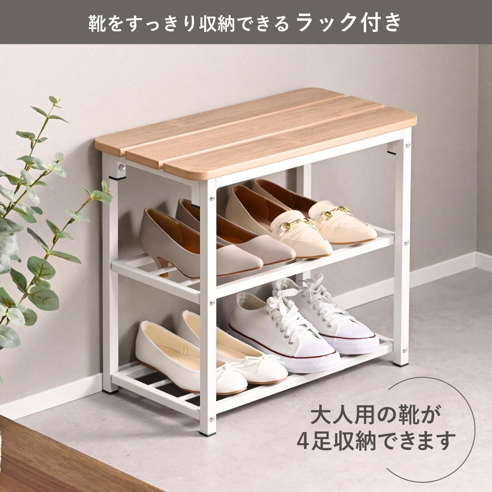 ✨【柔らかいクッション性のある座面は、靴を脱ぎ履きする際にも心地よいサポートを提供します!】ラクに座れる高さで、忙しい朝にも嬉しい配慮です。