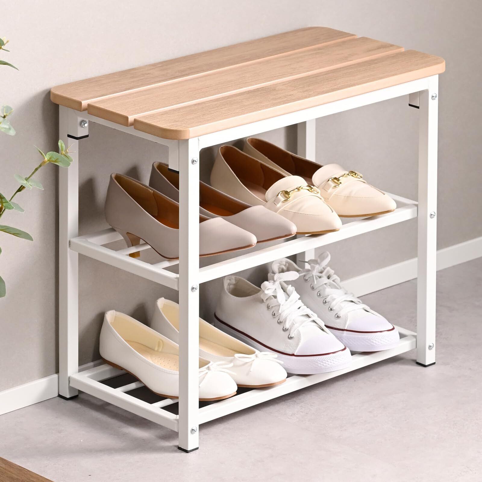 ✨【このベンチには、靴だけでなく小物も整理できるラックが付いています!】日々の出入りをスムーズにし、玄関をすっきり保つことができます。