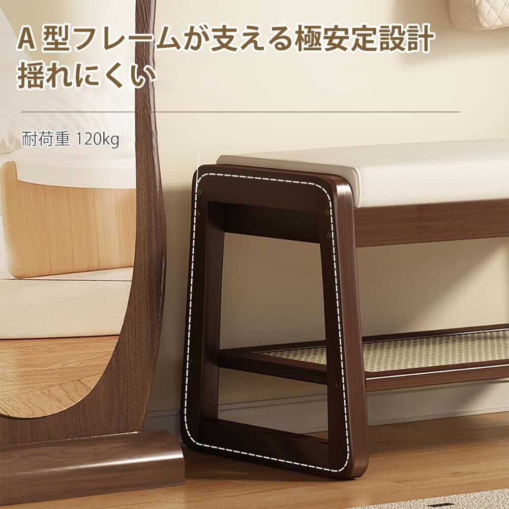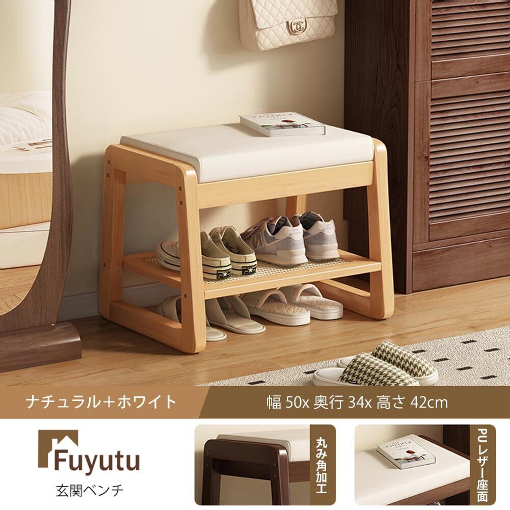 玄関ベンチ 幅50/70cm スリム 玄関椅子 シューズラック 下駄箱 北欧 おしゃれ 木製 PU スツール 玄関 腰掛け 省スペース 組み立て簡単 (ナチュラル, 幅50*奥行34*高さ42cm)