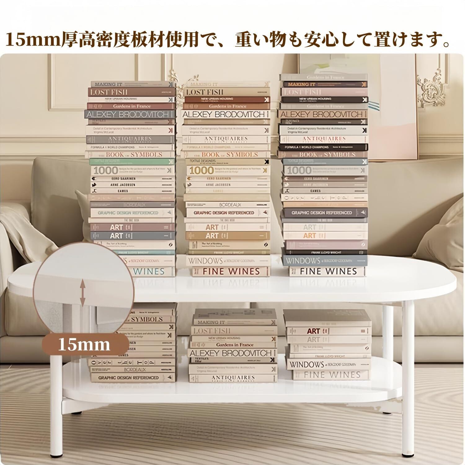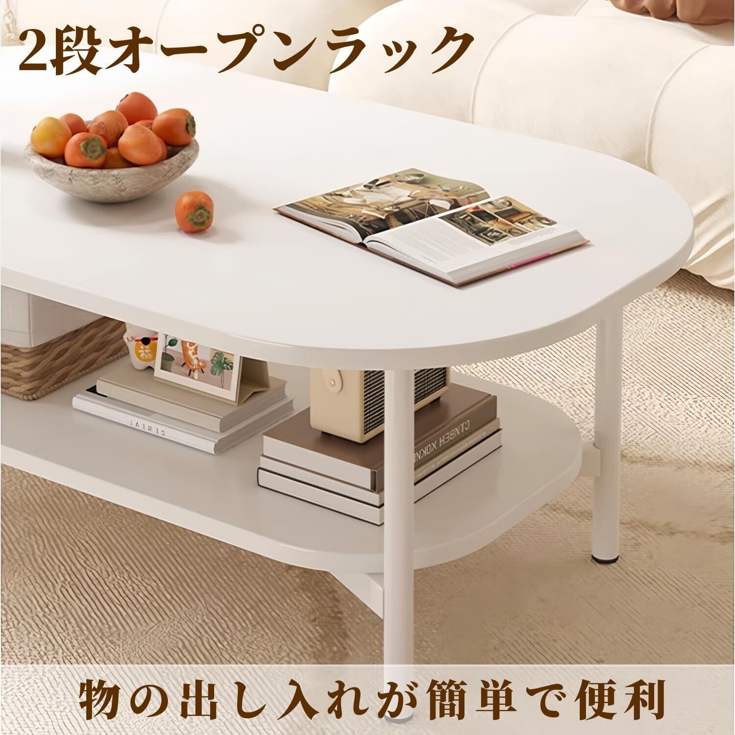 ローテーブル センターテーブル 幅80cm 楕円形 収納付き 北欧風 おしゃれ コンパクト 一人暮らし 直脚 ホワイト