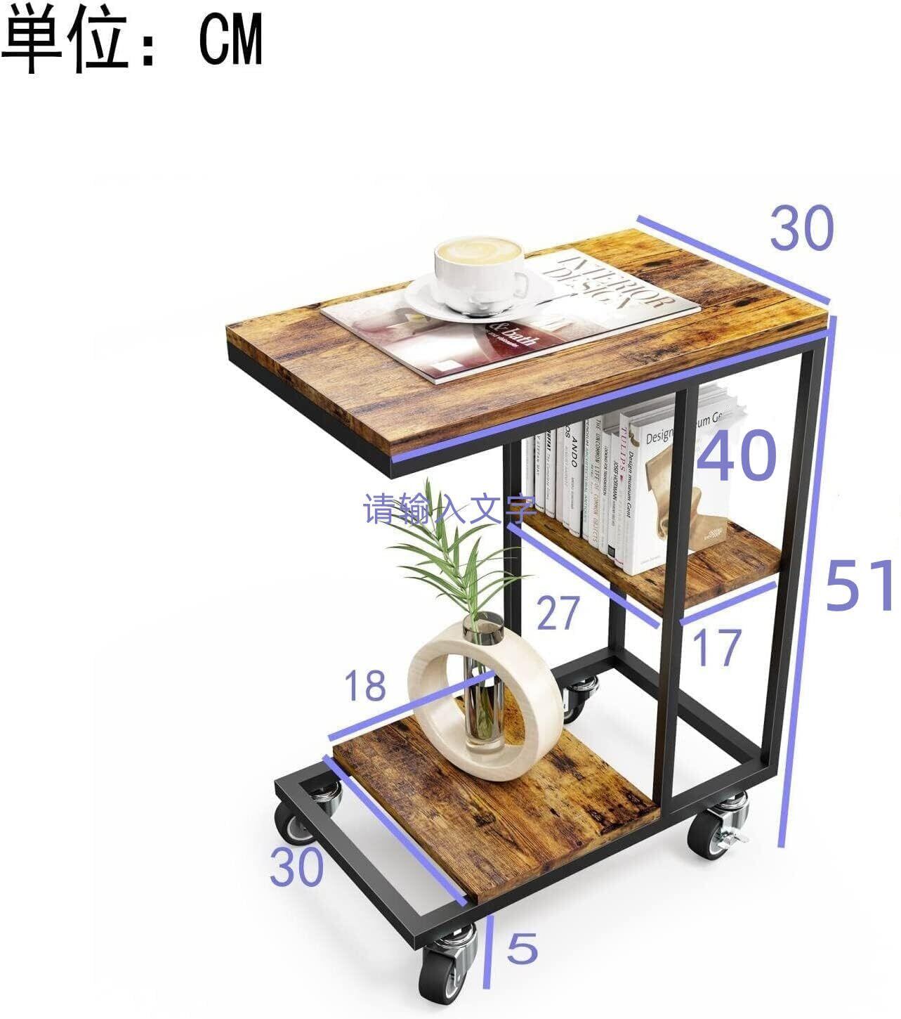 ZXD サイドテーブル ワゴン キャスター付きコの字型デザイン ベッド リビングサイドテーブル ソファ ビンテージ