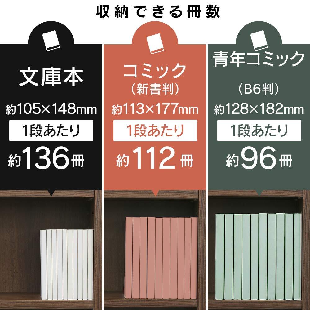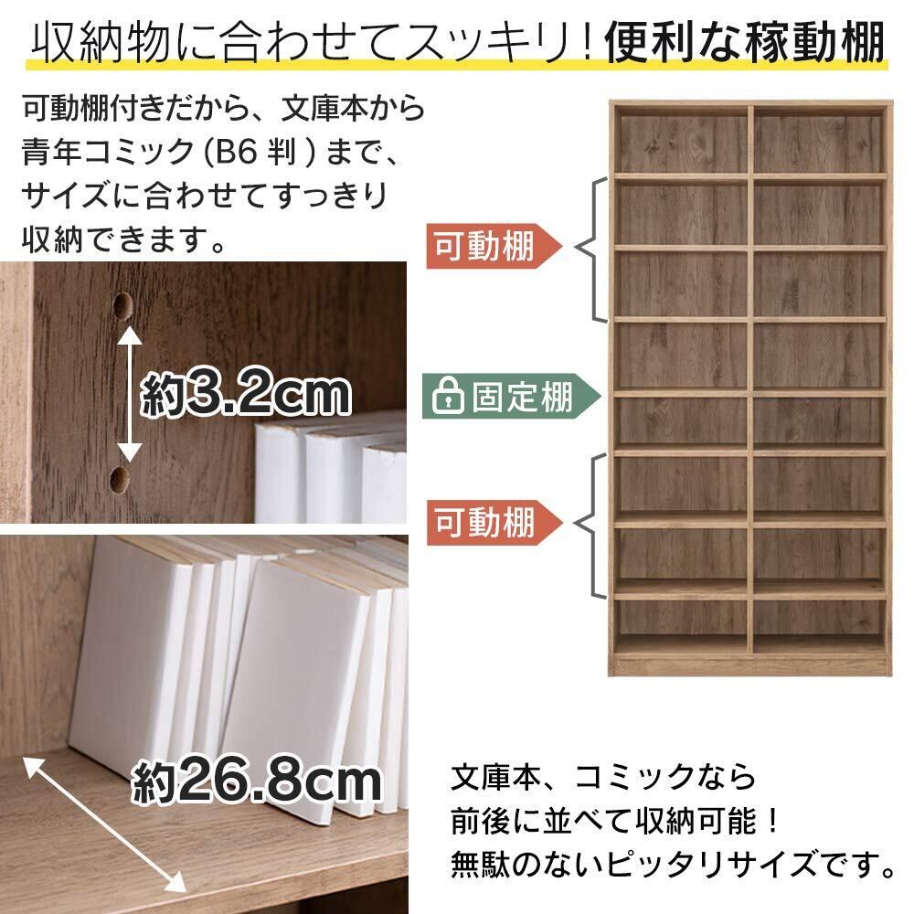 調整が可能な可動棚付きだから、文庫本から青年コミック(B6判)まで、サイズに合わせてすっきり収納できます。