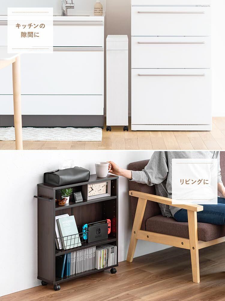 【すき間に収納スペースを!】押し入れやクローゼットにDVDやCD、ゲームソフトなどのメディアやコミックなどを収納することができるキャスター付き収納ラックです。横幅約15.5cmのスリム設計で、押し入れやクローゼットの他にデスク周りやキッチン周りなどの隙間にも収納することができます。