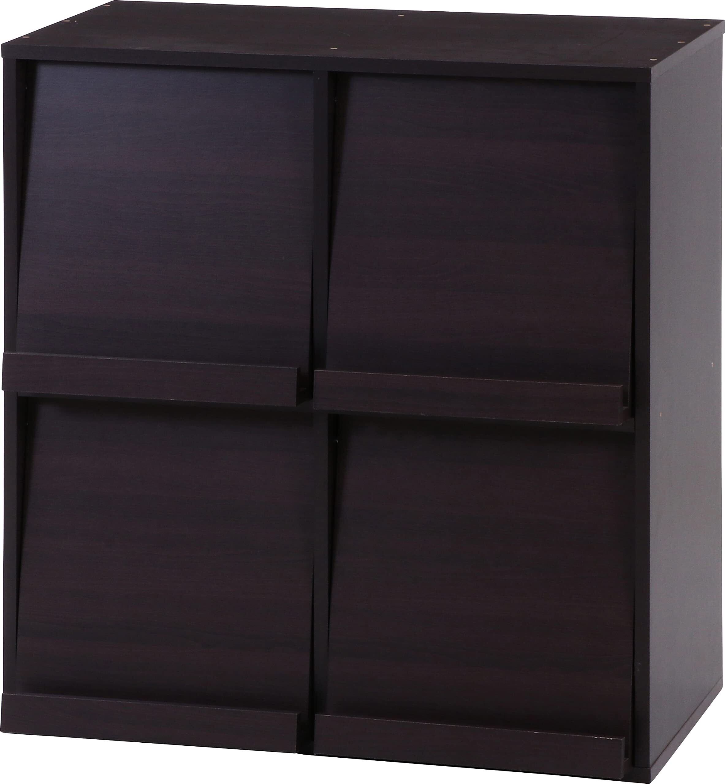不二貿易(Fujiboeki) ディスプレイラック 本棚 幅80×奥行46.5×高さ85cm ブラウン 4マス フラップ扉 サイドボード マガジンラック 86032