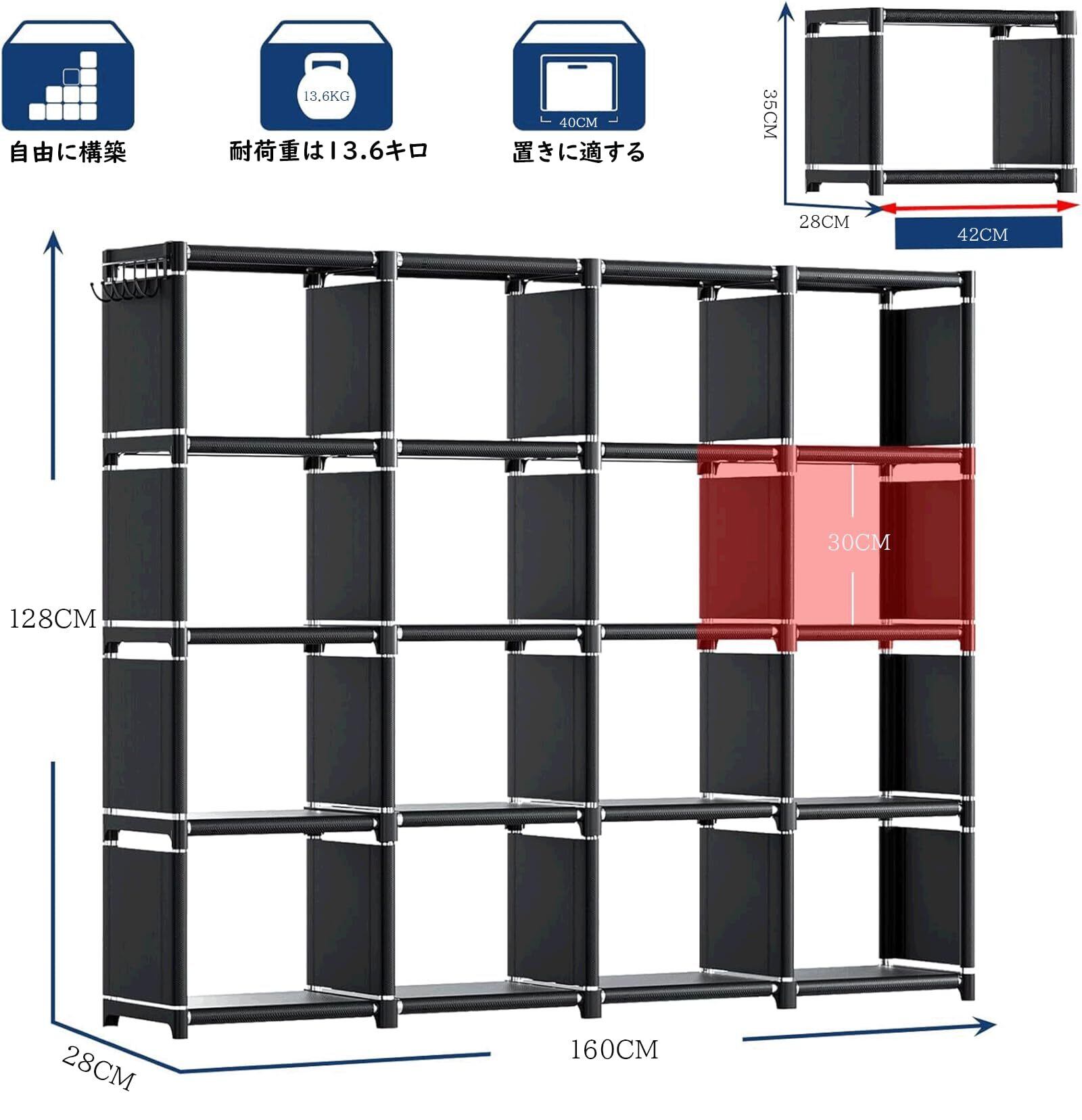 本棚 大容量 組み立て式 棚 ラック 収納棚 整理棚 ボックス スチール性 インテリア 簡単組立 おしゃれ 多用途 耐久性 収納便利 省スペース 1個 幅30×奥行30×高40㎝ 16ボックス