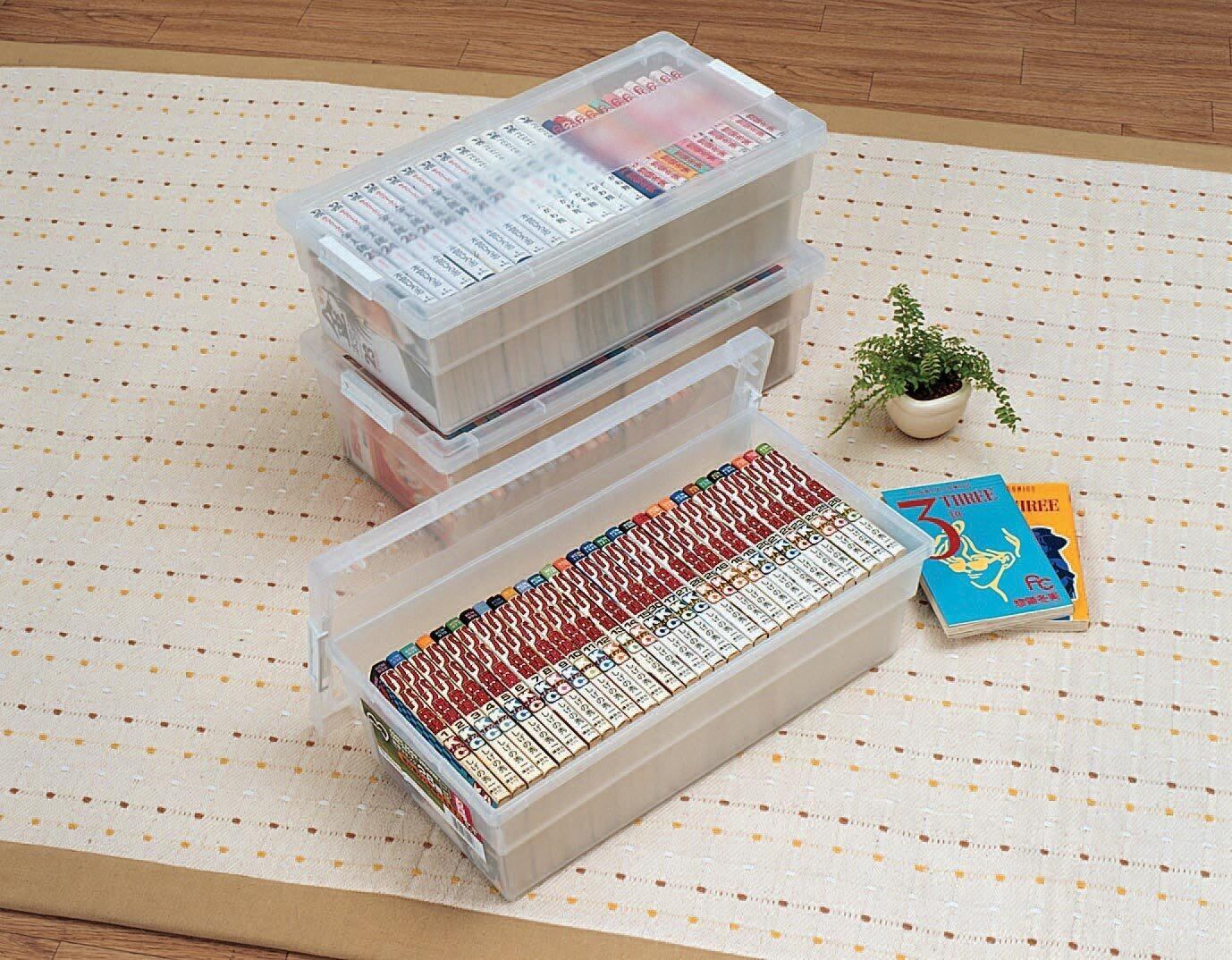 アイリスオーヤマ 収納 ボックス コミック本 コミック収納 ストッカー 日本製 幅45.4×奥行23.2×高さ14.8cm ホワイト/クリア CMS-23×3