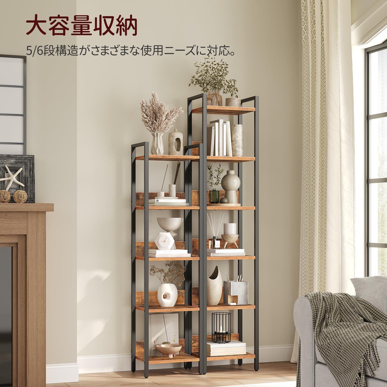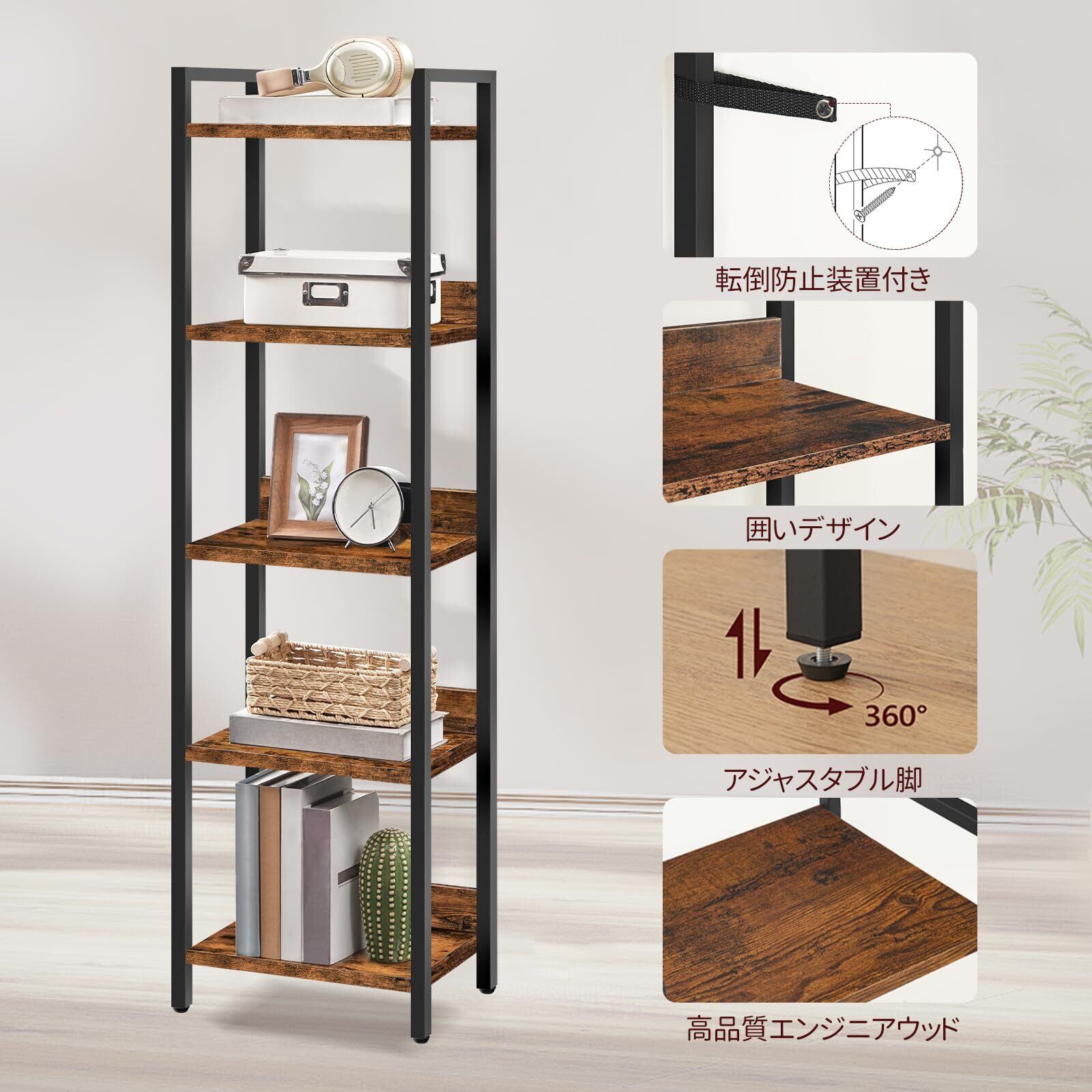 本棚 オープンシェルフ ラック 5段 スリム 大容量 省スペース縦型ブックシェルフ 棚 リビング・寝室・書斎・ベランダ対応 ヴィンテージブラウン BKHR5501
