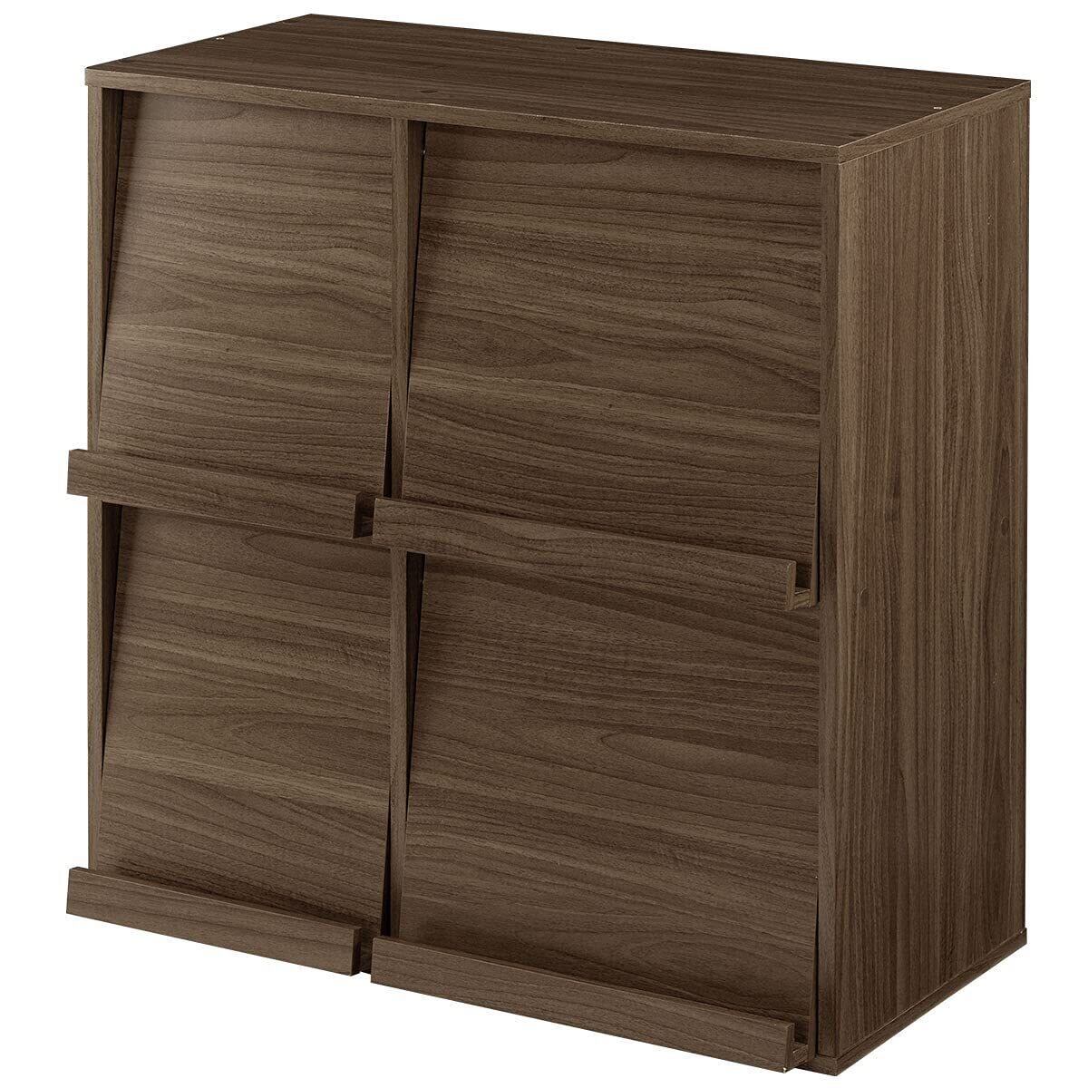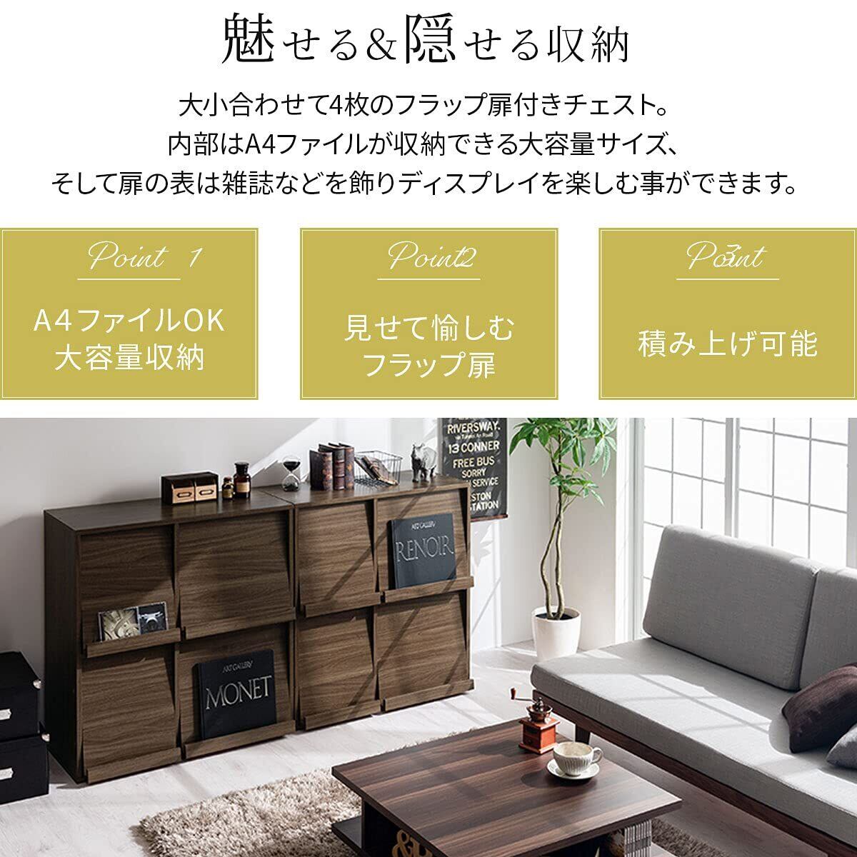 ✨【幅85cm・高さ90cmの広々とした設計!4扉のフラップ開閉式で、A4サイズの本や雑誌、絵本をすっきり収納できます!】深みのあるウォールナット仕上げが、どんなインテリアにもマッチし、エレガントな雰囲気を醸し出します。