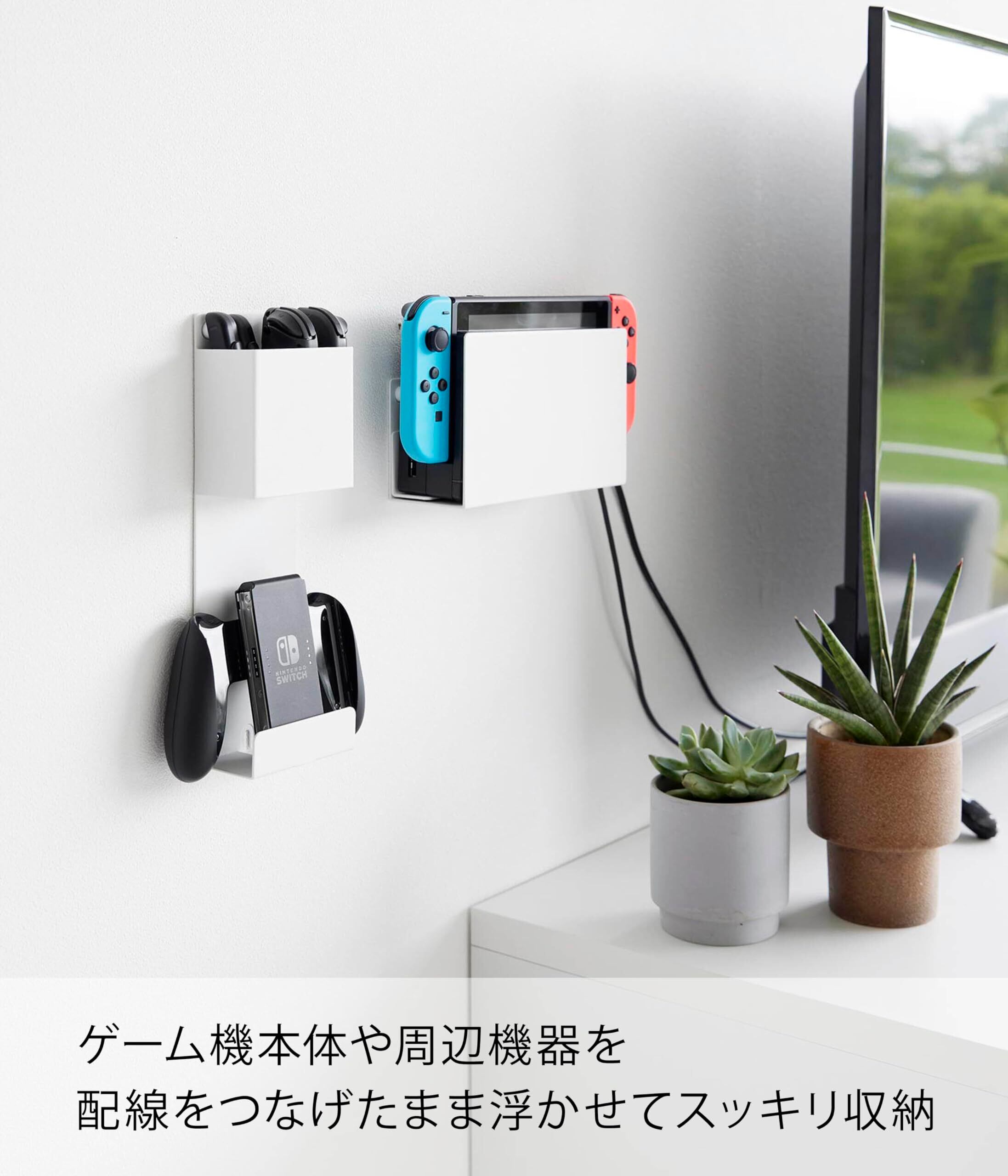 \【◆山崎実業(Yamazaki) 石こうボードピンセット・木ネジ 付属 石こうボード壁対応 充電しながら収納できる ゲーム機収納 ホワイト】/おしゃれで実用的なゲーム機収納です!