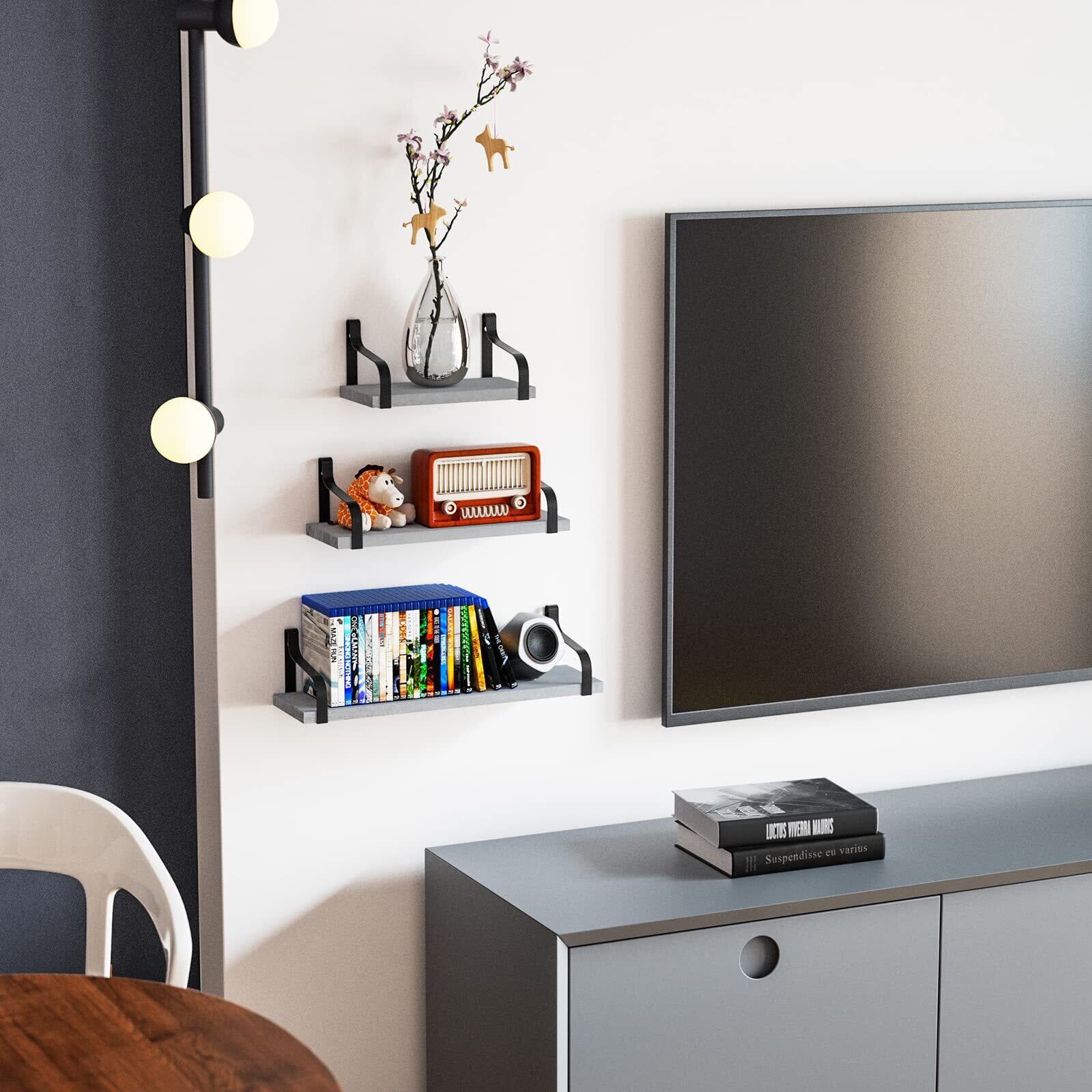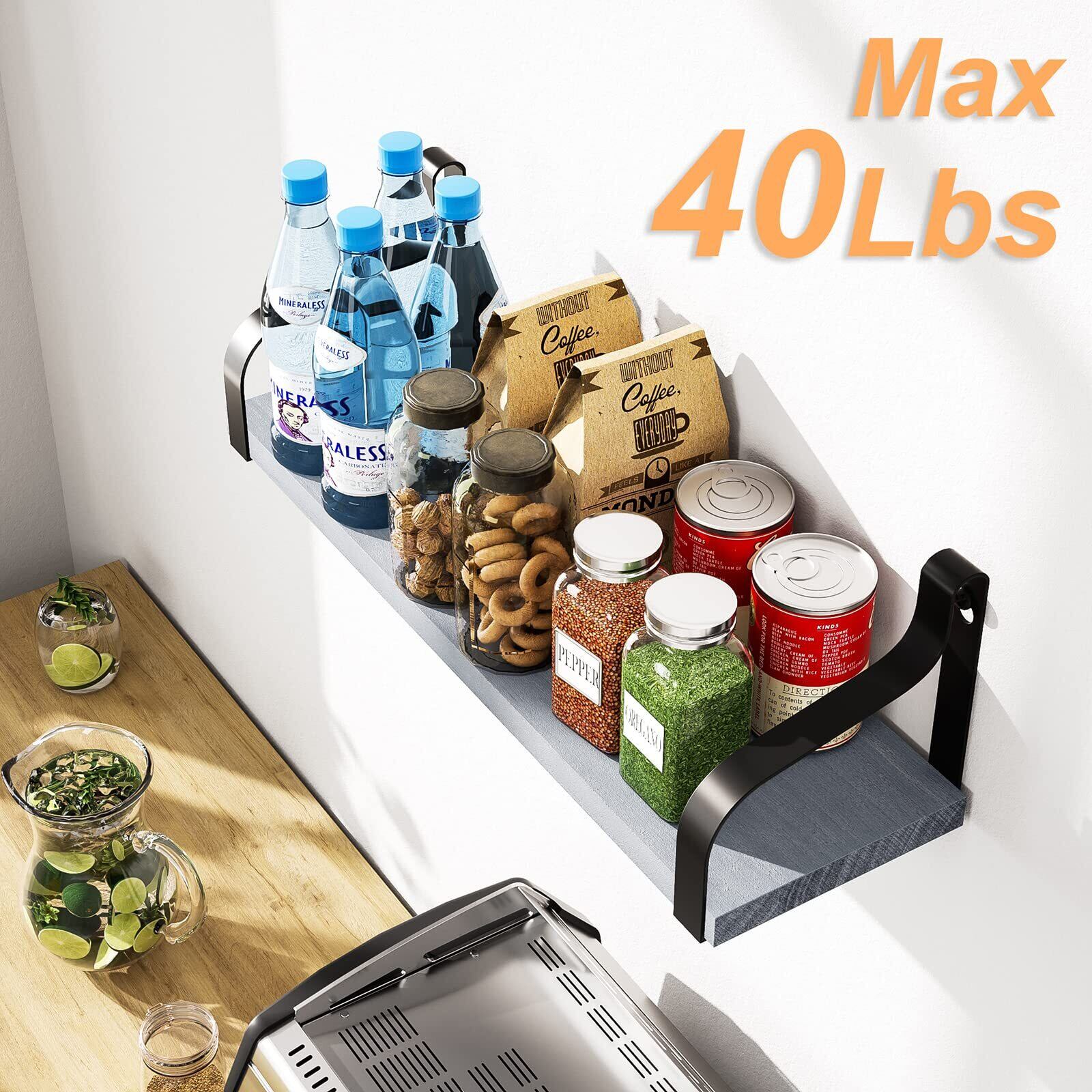 Love-KANKEI ウォールシェルフ ウォールラック 壁掛け棚 DIY飾り棚 収納棚 天然木製 ネジ付き 3個セット 調理器具 生活雑貨 整理整頓(23+33+43cm 3点セットグレー)
