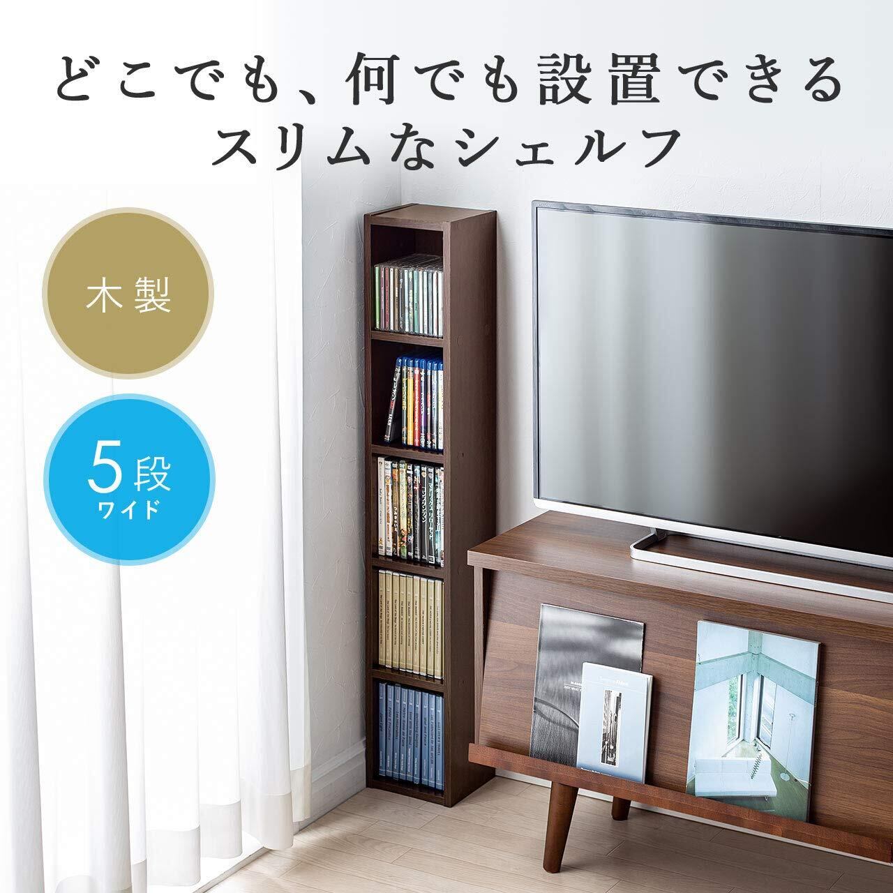 サンワダイレクト メディアラック CD/DVD 小物 収納 縦置き 横置き スリム 5段 ライトブラウン 200-FCD065LBR