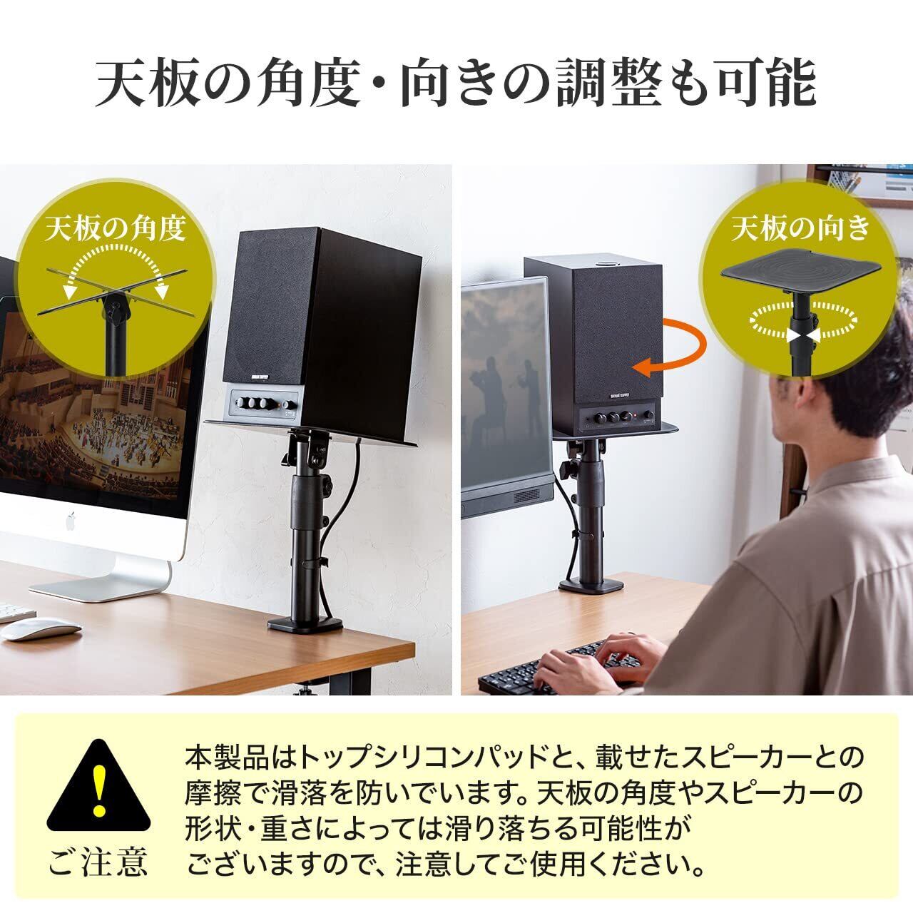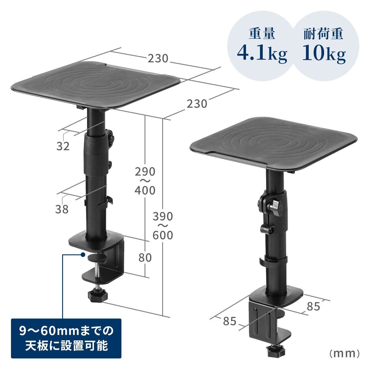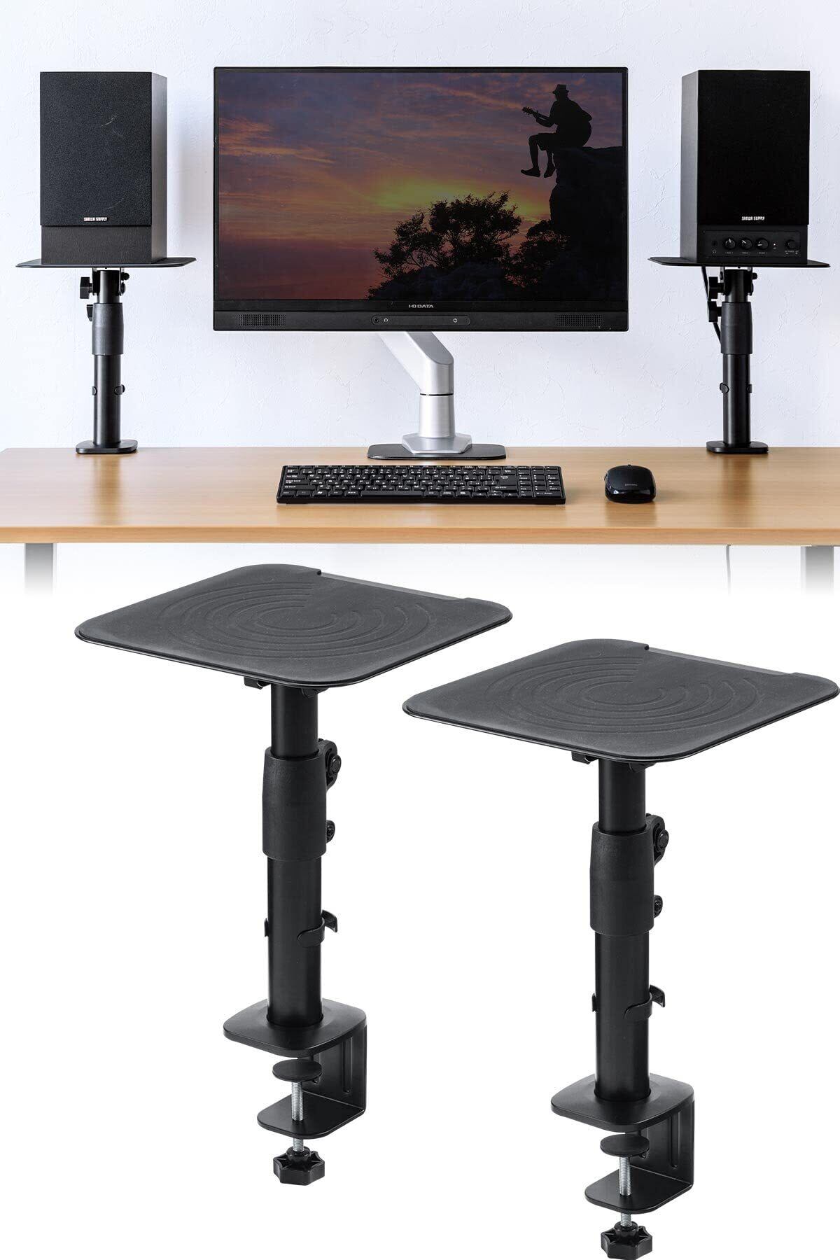 \【◆サンワダイレクト スピーカースタンド 卓上 クランプ 高さ29~40cm 角度調整可能 天板23×23cm 耐荷重10kg 100-SPSTN01】/スピーカーの設置をサポートするマルチスタンドです!