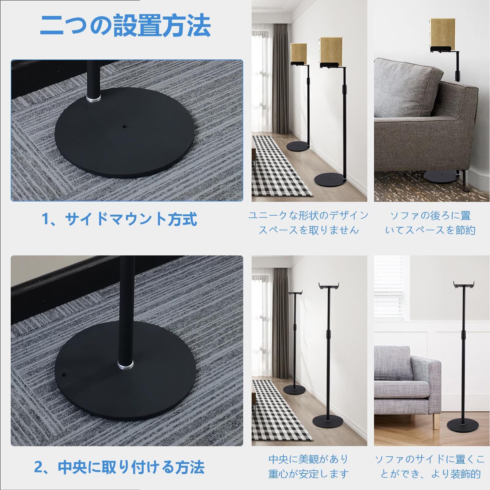 【2つの設置モード】1、スピーカー置きはサイドポジション設置方式を採用し、丸いポールをベースのサイドポジションに設置することで、オーディオスタンドは壁際に設置することができ、ソファーの後ろに設置することもでき、スペースを節約することができます。2、スピーカー台スタンドは中央の取り付け方法で使用することができ、丸棒はベースの真ん中の位置にインストールされます、重心はより安定している、あなたが配置したい任意の位置に配置することができます。