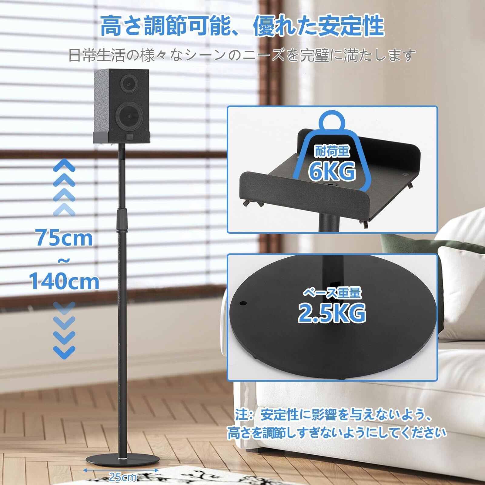 スピーカースタンド 2台1組 高さ調整可能 75~140cm 耐荷重6kg 天板 13cmX14~22cm ケーブルマネジメント付き スピーカー台 2つの設置モード 組み立て簡単 ホームエンターテイメント、録音室、会議室、スタジオ用(ブラック)
