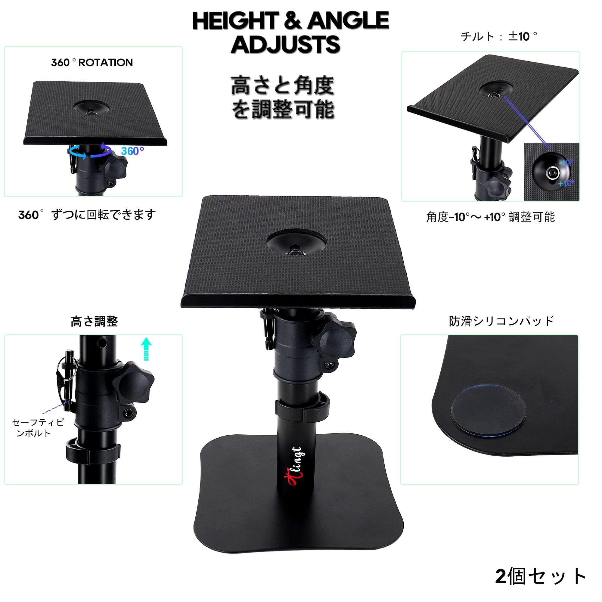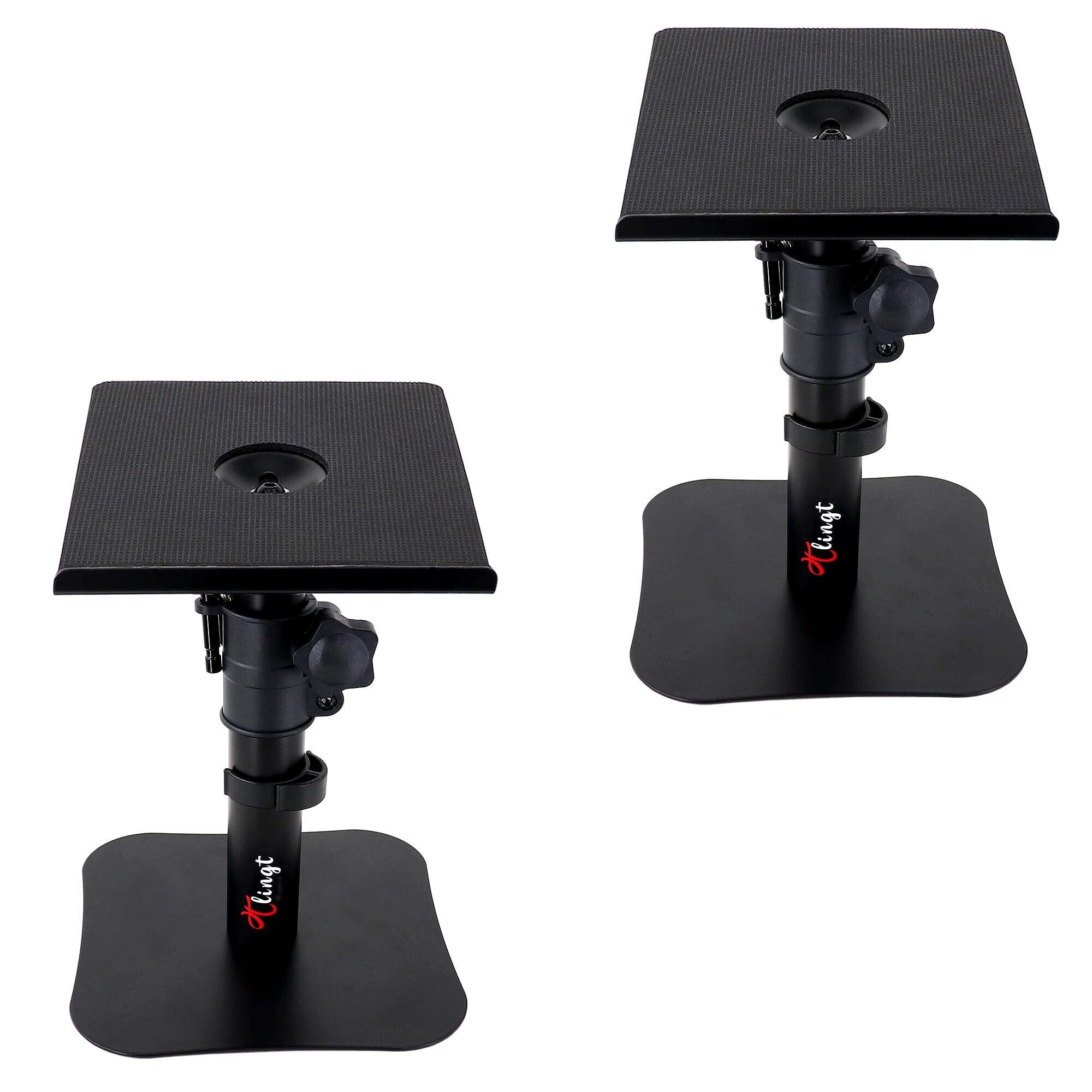 スピーカースタンド 卓上 小型 モニタースピーカースタンド (2個セット)|17×20cm金属天板||角度調節±10°|耐荷重15kg|高さ22~36cm調節可能|卓上フラットベース設計, 3~4インチのモニタースピーカー、ブックシェルフスピーカーに適しています