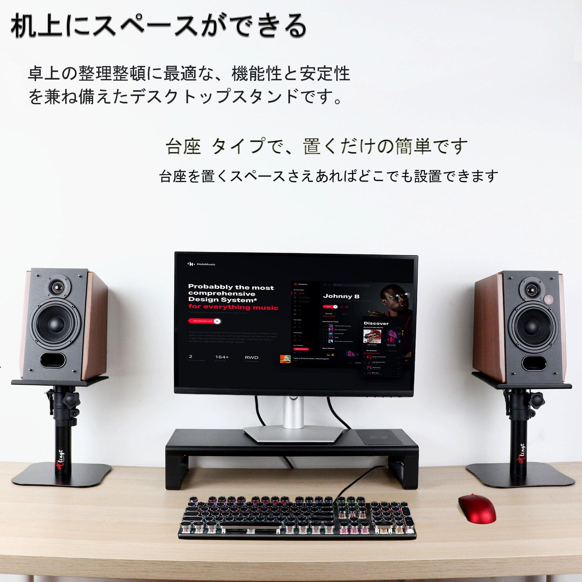 パッド付きスピーカープラットフォーム:このデスクトップスピーカースタンドは、滑り止めのパッドを使用しており、スピーカーを傷から守るとともに、共振や表面振動を効果的に吸収します