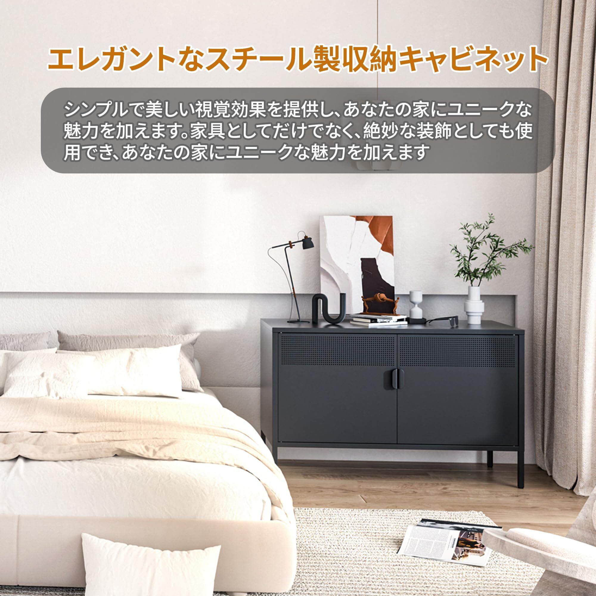 この「キャビネット 鋼製 サイドボード」は、機能性とデザイン性を兼ね備えたアイテムで、生活空間をより快適に整えるお助けをします。整理整頓されたおしゃれな空間を実現する、あなたの強い味方です!