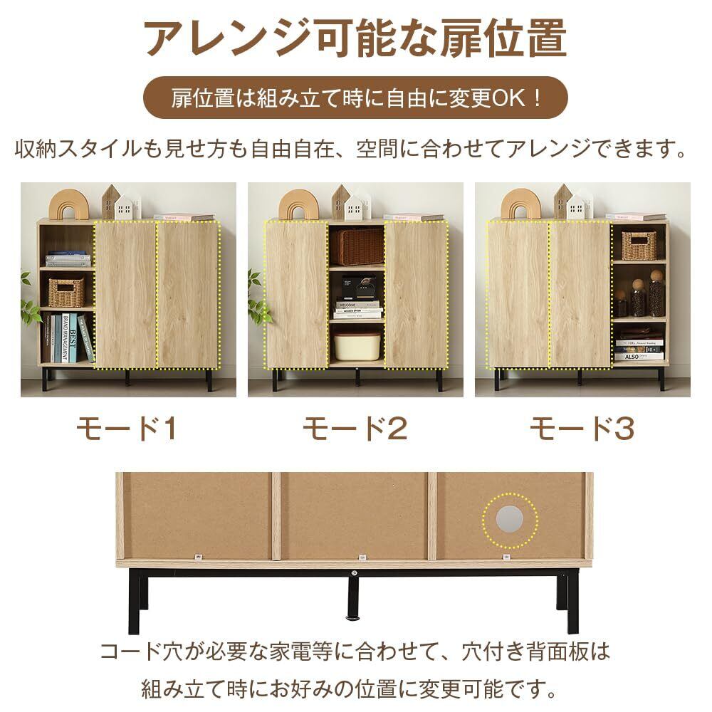 【アレンジ可能な扉位置】扉位置は組み立て時に自由に変更OK。収納スタイルも見せ方も自由自在、空間に合わせてアレンジできます。コード穴が必要な家電等に合わせて、穴付き背面板は組み立て時にお好みの位置に变更可能です。