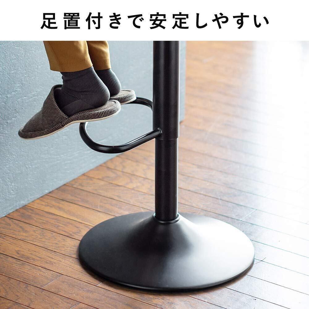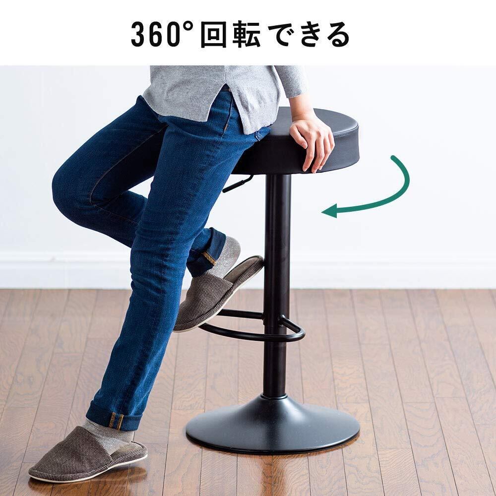 イーサプライ カウンターチェア ハイスツール 丸椅子 360度回転 高さ調節 62~84cm 足置き PUレザー クッション ブラック EEX-CH75