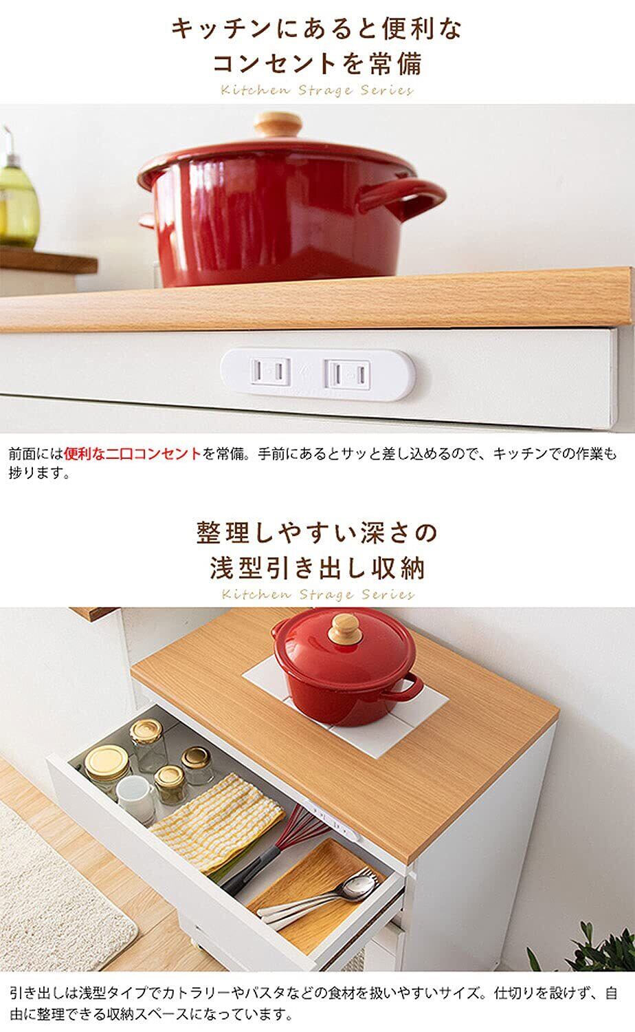 ✨【多様な収納スペース!】扉と引き出しを備えた設計で、調理器具や食器、食品の収納に便利です。スッキリとした見た目で、使いたいものをすぐに取り出せる実用性も兼ね備えています。