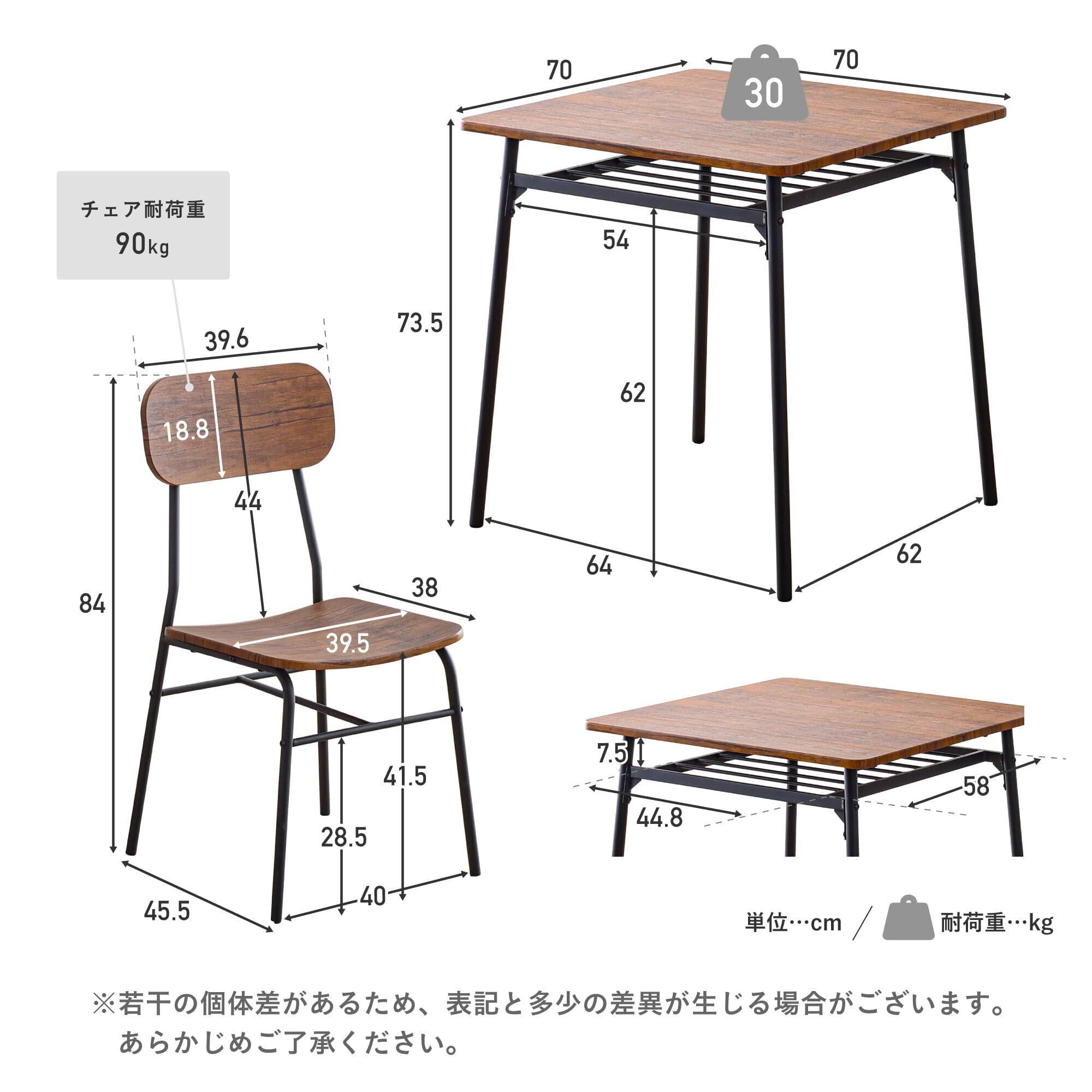【毎日使うものこそ安心できる頑丈設計に】ダイニングテーブルは日々の暮らしに欠かせないアイテムで毎日使うものだからこそ安定性や耐久性を追求した設計にこだわりました。テーブル・チェアのフレームは、強度に優れたスチール製のフレーム。天板の耐荷重は約30kg。天板下はスチール製のフレームで補強した頑丈設計で十分な耐荷重を確保。チェアの耐荷重約90kgで、高い耐久性が安定した座り心地を実現します。【製造工程上、脚部底面にくすみがある場合がございます。】テーブル・チェアの脚部底面に少々くすみが発生する場合がございます。製造工程上にくすんでしまう箇所で、目立たない部分でございますが、予めご了承のほどお願いいたします。
