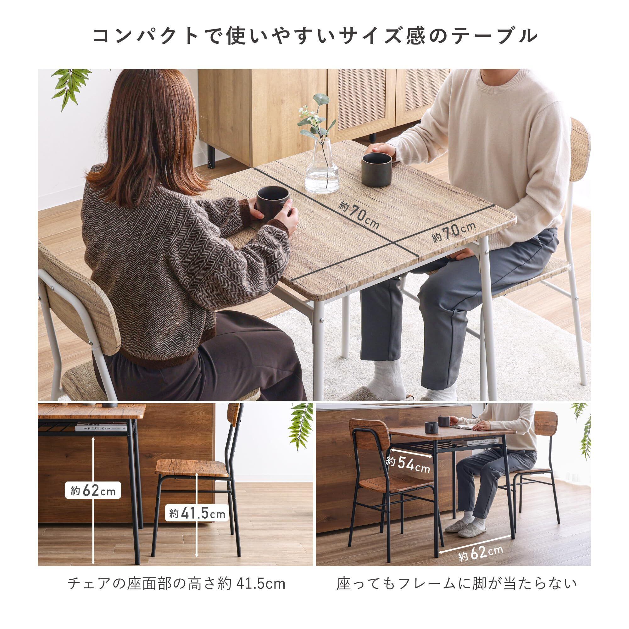 【コンパクトで使いやすいサイズ感のテーブル】天板の横幅と奥行き約70cmのコンパクトなサイズ感でお部屋のスペースを取らずにダイニングテーブルの設置をしたい方におすすめです。 【テーブル周りの小物もすっきり収納可能な天板下収納棚付】散らかりがちなダイニングテーブル上の小物などを隠せる収納スペースを天板下に搭載。豊富な収納力で本や雑誌など厚みのあるものも収納ができます。余分な小物をすっきりとまとめて、必要な時にすぐに使えて綺麗なダイニングテーブルを保てます。