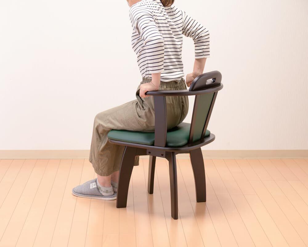 肘付で立ち上がりもラクラク。背中にもクッションがあり快適にご使用いただけます。