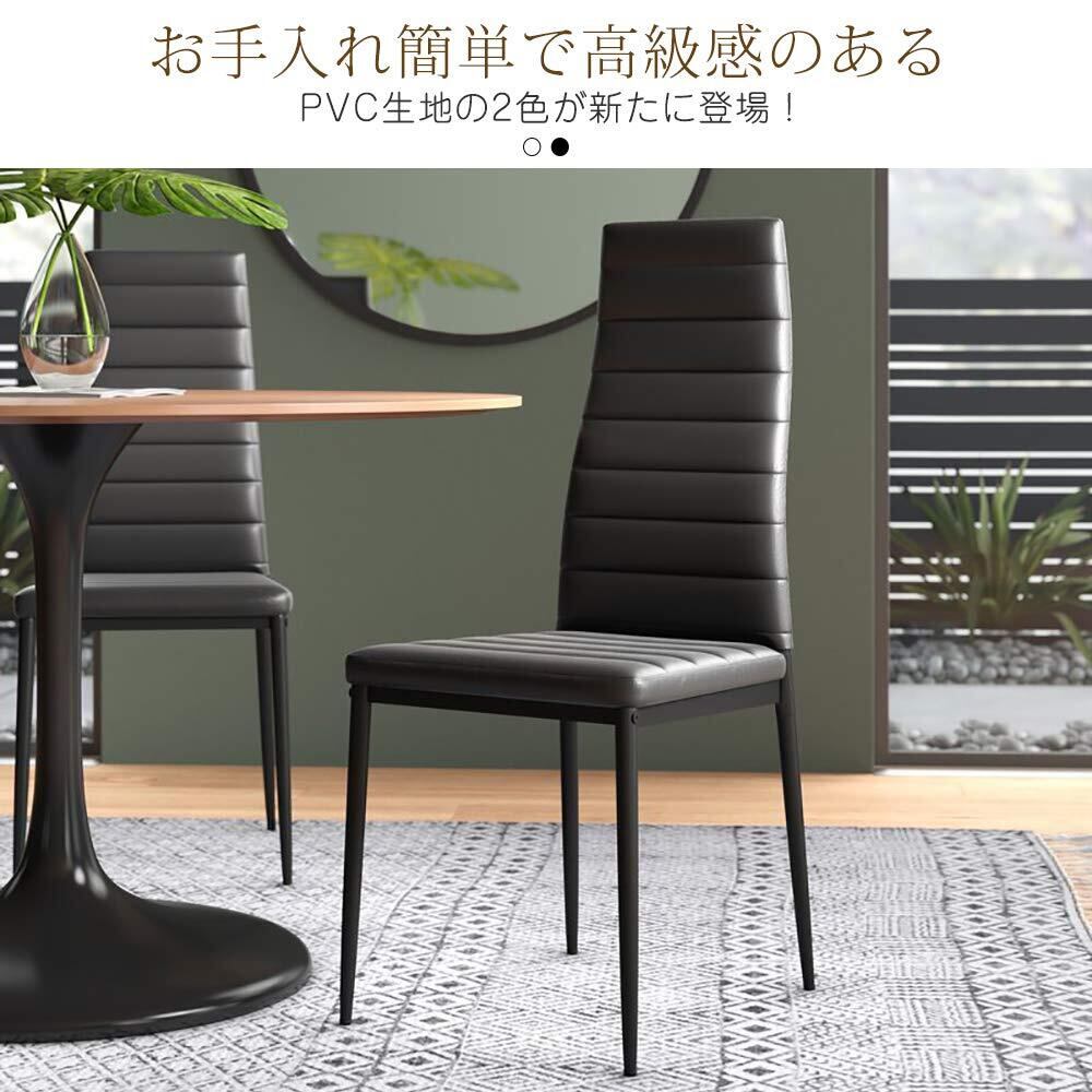 肘掛けが無いのでどんなテーブルにも合わせやすいダイニングチェアー! 背もたれは体を包むように緩やかにカーブしているので、しっかり支えます 座面はお手入れの簡単な合成皮革。