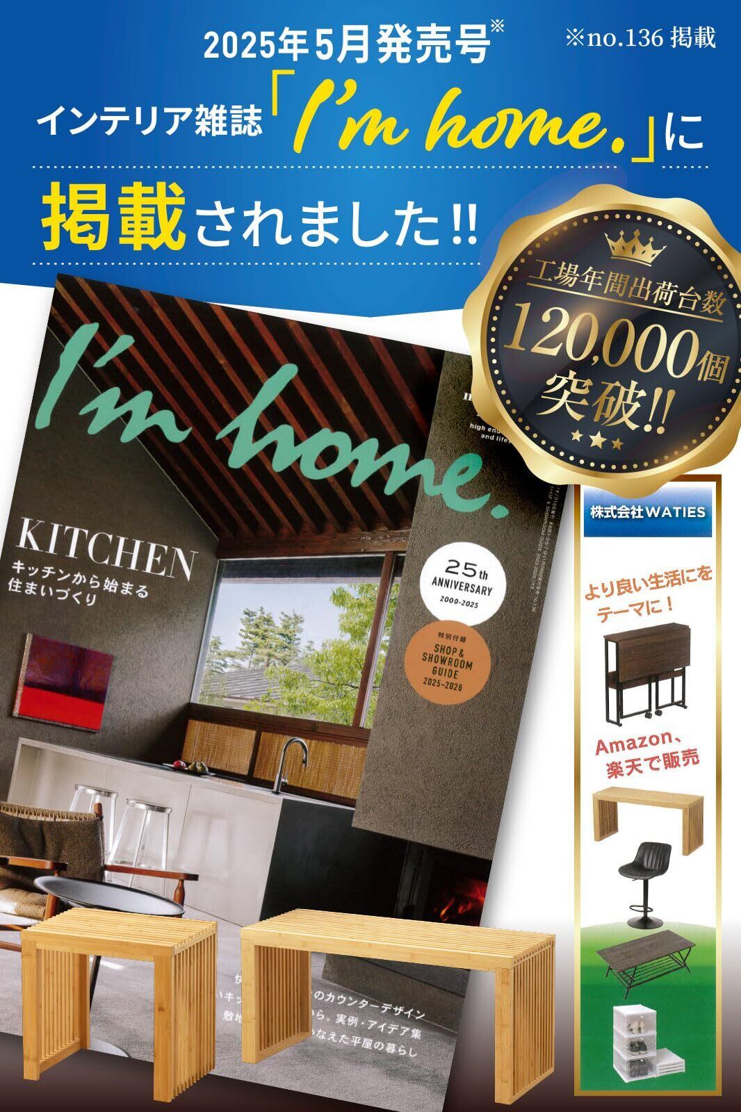 【雑誌掲載の注目アイテム】 人気インテリア誌『I'm home』2025年5月発売号に掲載されました! 専門家にも選ばれた、こだわりのデザインです。