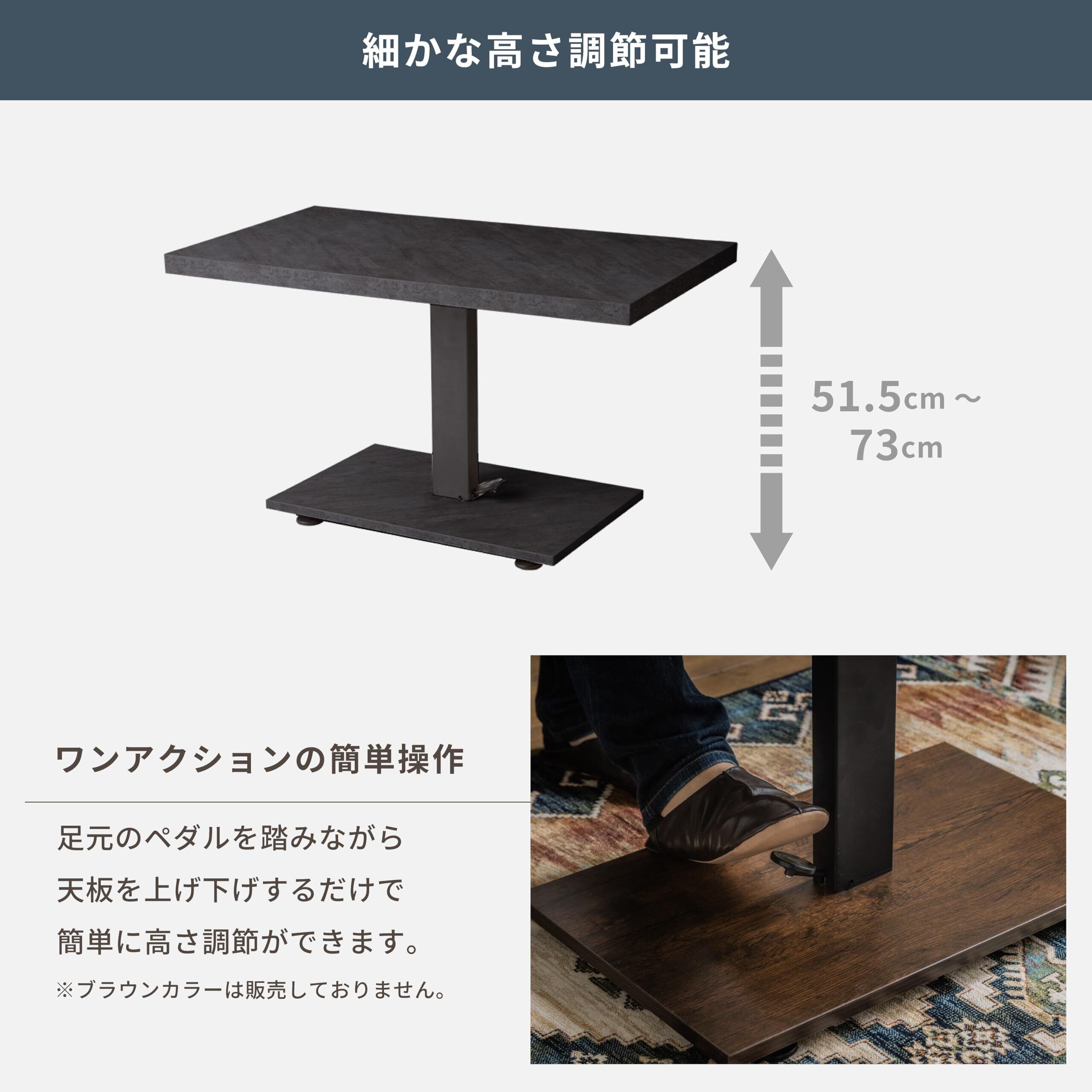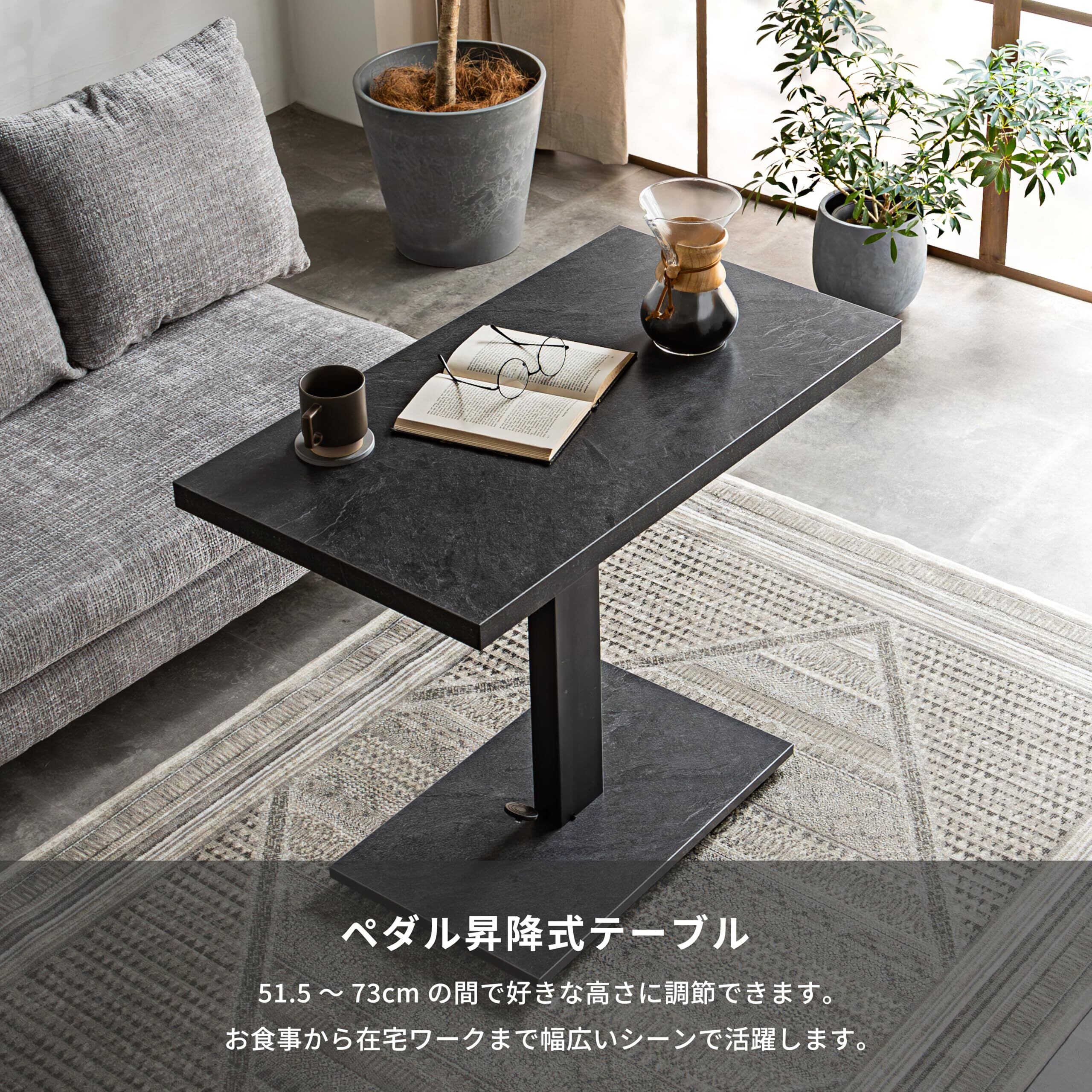 \【◆Pure Luxe テーブル 昇降式 ガス圧式 大理石調 デスク リビング 高さ調節 ペダル式 ダイニング (ブラックグレー, 90幅センターテーブル)】/スタイリッシュで実用的な昇降式テーブル!