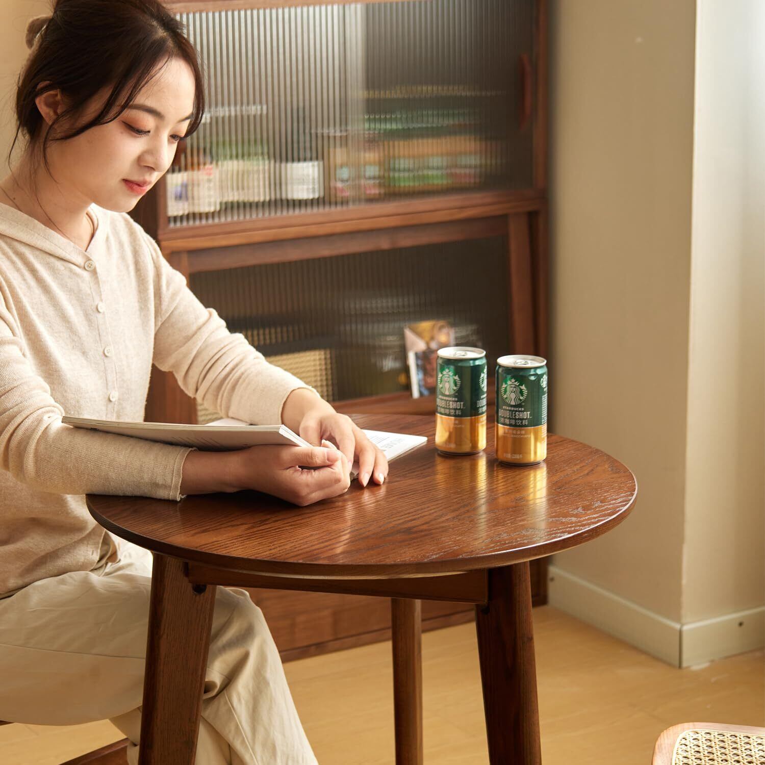 ✨【食事や作業、趣味にも最適!】この丸テーブルは、食卓としてはもちろん、書き物や手芸、ティータイム等様々なシーンに適応。シンプルながら多様な場面で重宝します。