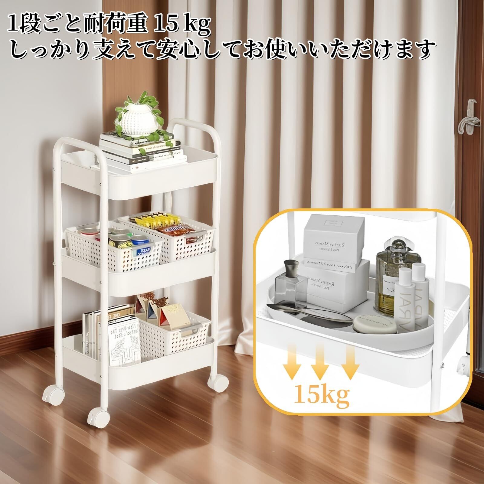 キッチンワゴン 収納ラック キャスター付き スリムワゴン 3段 オールスチール構造 防錆 ペットボトルラック 小物隙間収納 台所収納 調味料棚 ホワイト