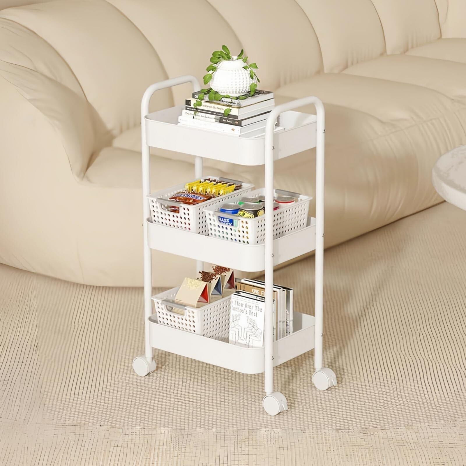 \【◆キッチンワゴン 収納ラック キャスター付き スリムワゴン 3段 オールスチール構造 防錆 ペットボトルラック 小物隙間収納 台所収納 調味料棚 ホワイト】/快適なキッチンライフを実現する便利な収納アイテム!