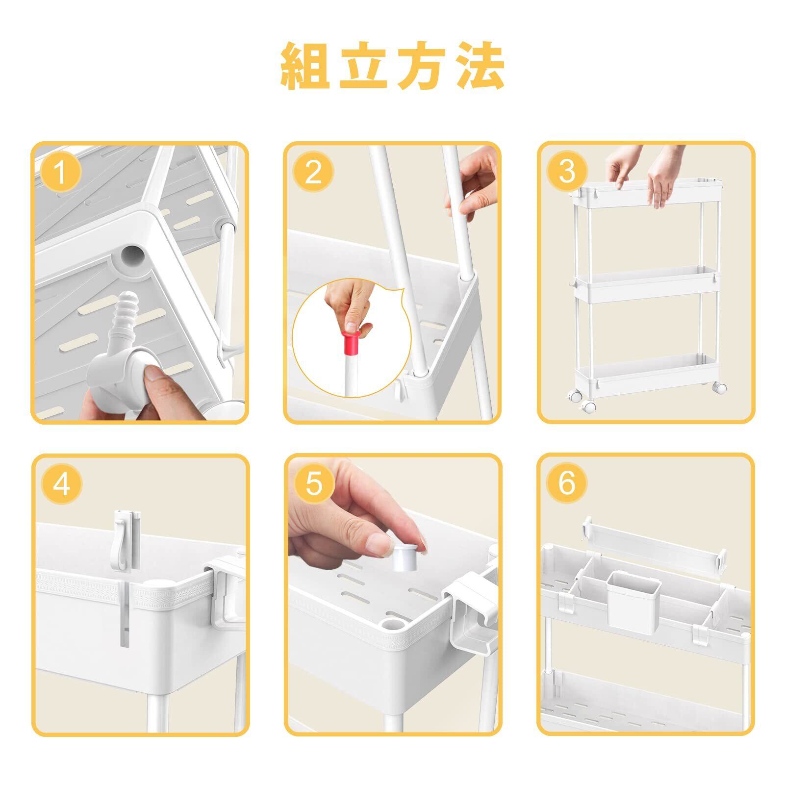 【組み立て簡単】このキッチンワゴンは組み立て簡単、女性一人でも組み立てられます。説明書に組み立て図解もあります。