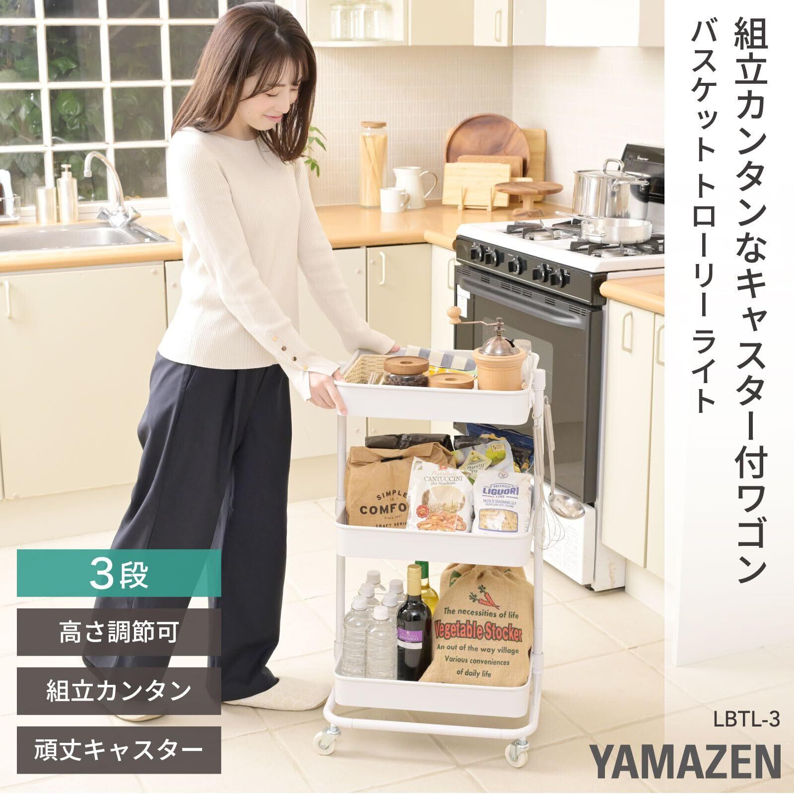 山善(YAMAZEN) キッチンワゴン キャスター付きワゴン 3段 バスケットトローリー メッシュタイプ 高さ調節可能 全体耐荷重30kg 幅45.5×奥行36×高さ81cm ワゴン キャスター付き 収納ワゴン キッチン 収納 組立品 ホワイト LBTL-3(WH)