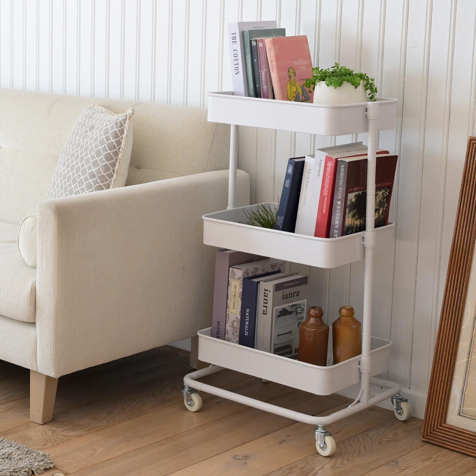 【マルチに使える収納ワゴン】キッチンラックとしてや、ランドセルや学習用品の収納として、コスメワゴンなど家の様々な場所でマルチにつかえるキャスター付きワゴンです。スチール製で耐荷重は30kgなので、工具入れやプランターラックとしても使えます。頑丈キャスター仕様で移動するときもスムーズに動かせます。