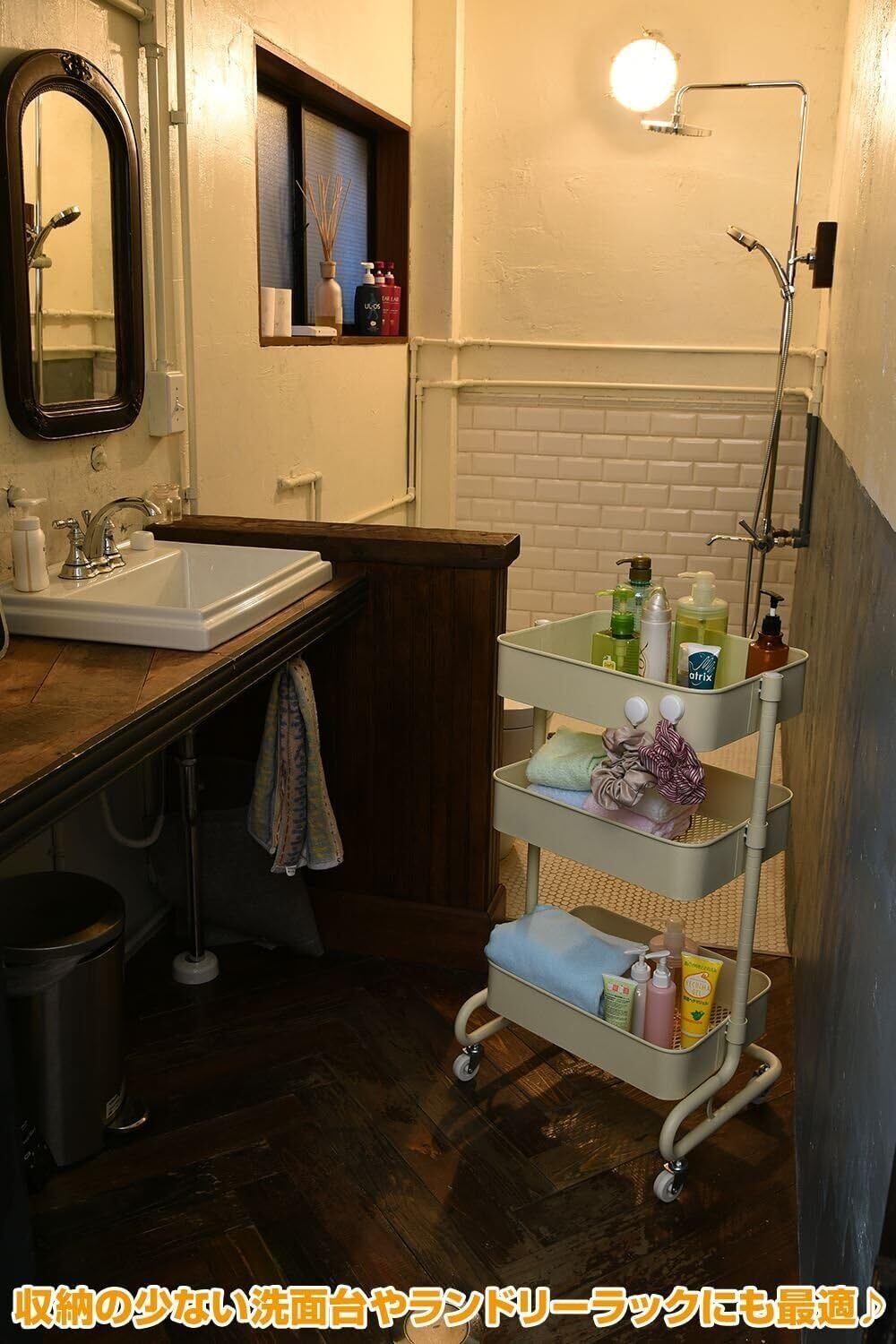 このキッチンワゴンは、機能性とおしゃれさを兼ね備えた完璧な収納アイテムです。毎日の生活をより快適に、そしてスタイリッシュに彩ります。