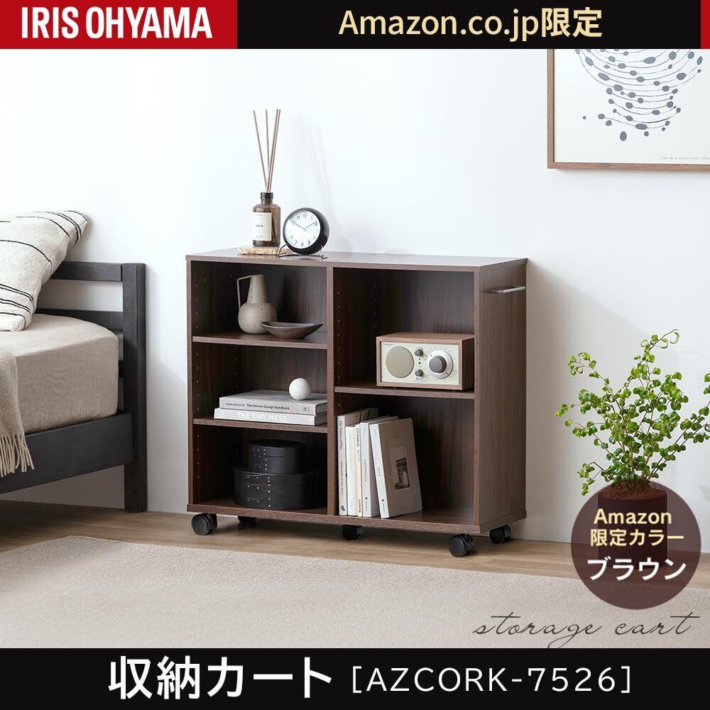 \【◆アイリスオーヤマ 棚 キッチンワゴン カート 収納 棚 おしゃれ ラック 調味料ラック おもちゃ キッチン 収納 棚 カート 本棚 幅75×奥行26×高さ65cm 取っ手 キャスター付き モカブラウン AZSYR-7526】/おしゃれで多機能な収納ワゴン、あなたの生活空間を美しく整えます!