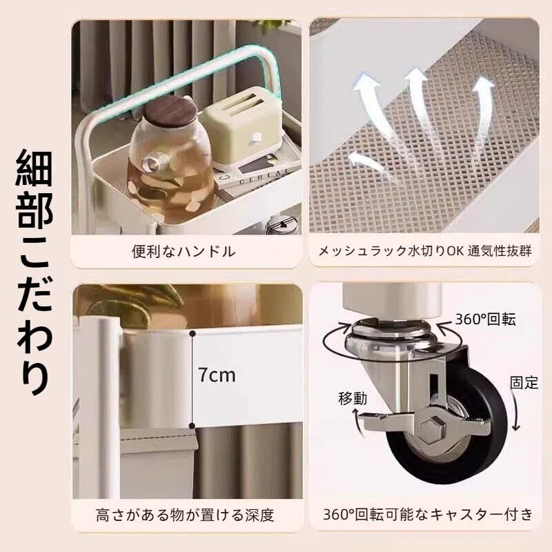 このキッチンワゴンは、コンパクトでありながら高い収納力を発揮する優れたアイテムです。シンプルなデザインと機能性が両立し、あなたの生活をさらに快適にします。