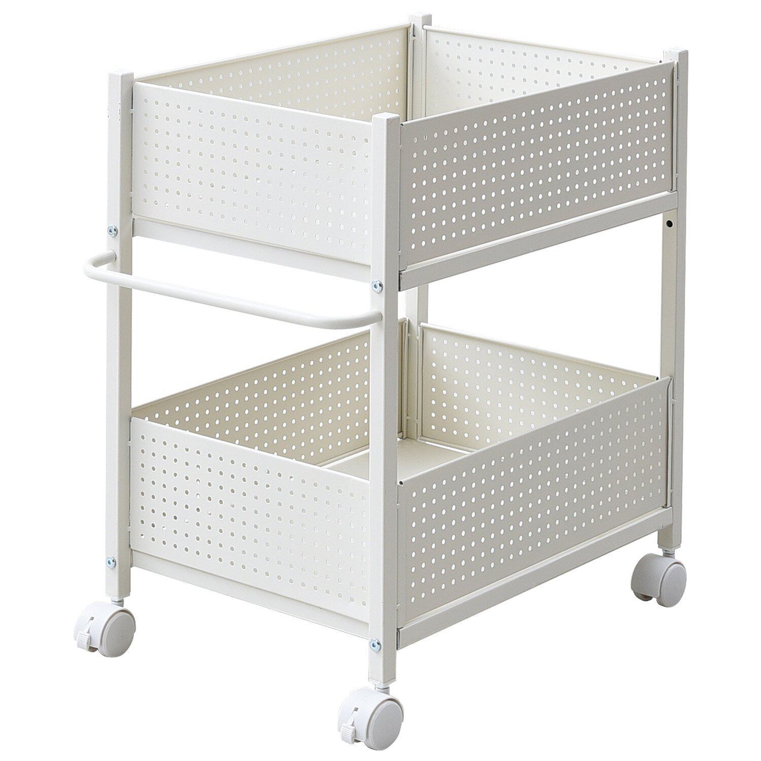 山善(YAMAZEN) 押入れ(クローゼット)収納 ラック 幅38×奥行57×高さ64.5cm 取っ手 ストッパー付きキャスター 上段下段かご 横板が取り外せる 組立品 ホワイト/ホワイト OPR-5738(WH/WH)