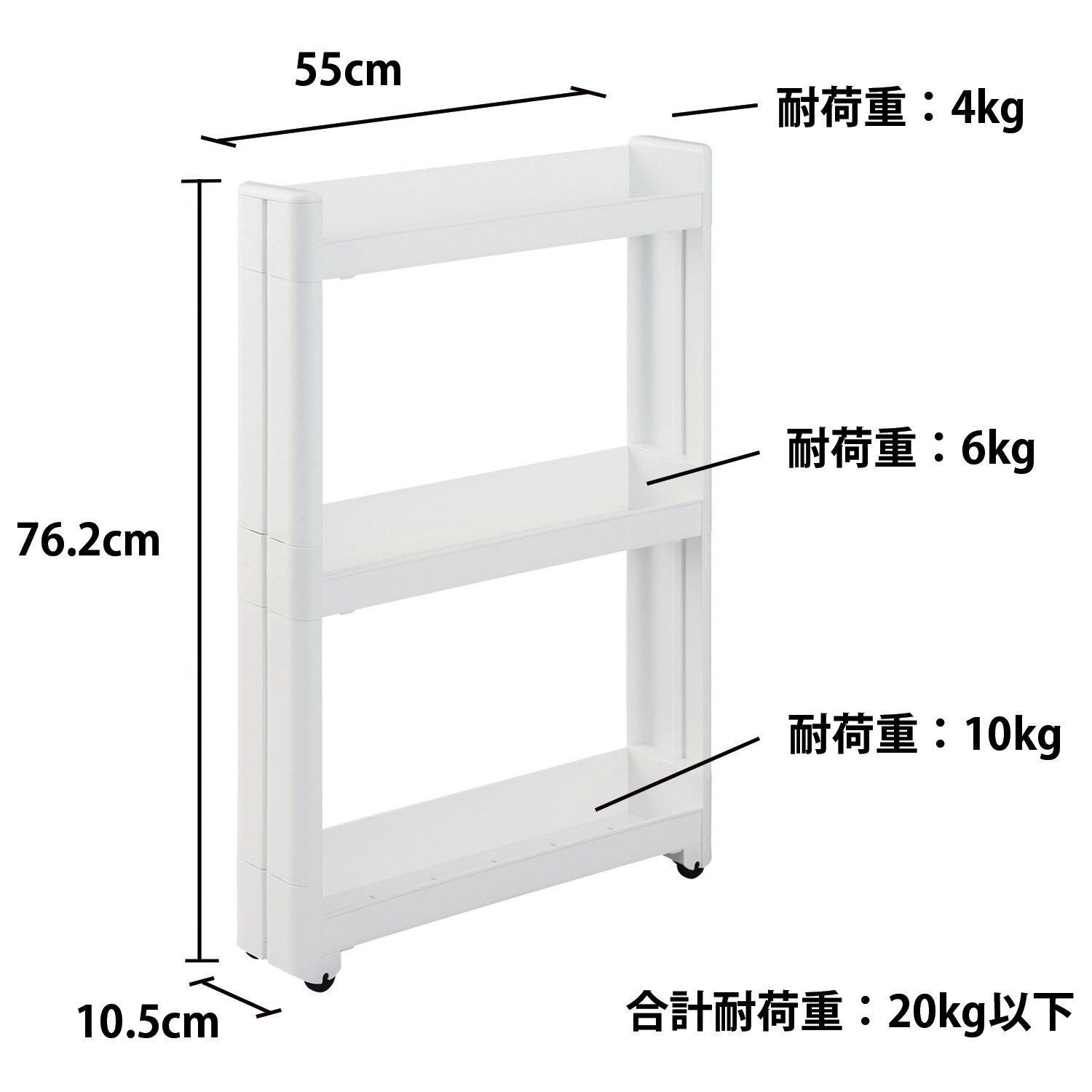 \【◆不動技研 スマートワゴン Fit W100 55-3段 約幅10.5×奥行55×高さ76.2cm F-2572】/キッチンやリビングがスッキリ整う、実用的な収納ワゴン!