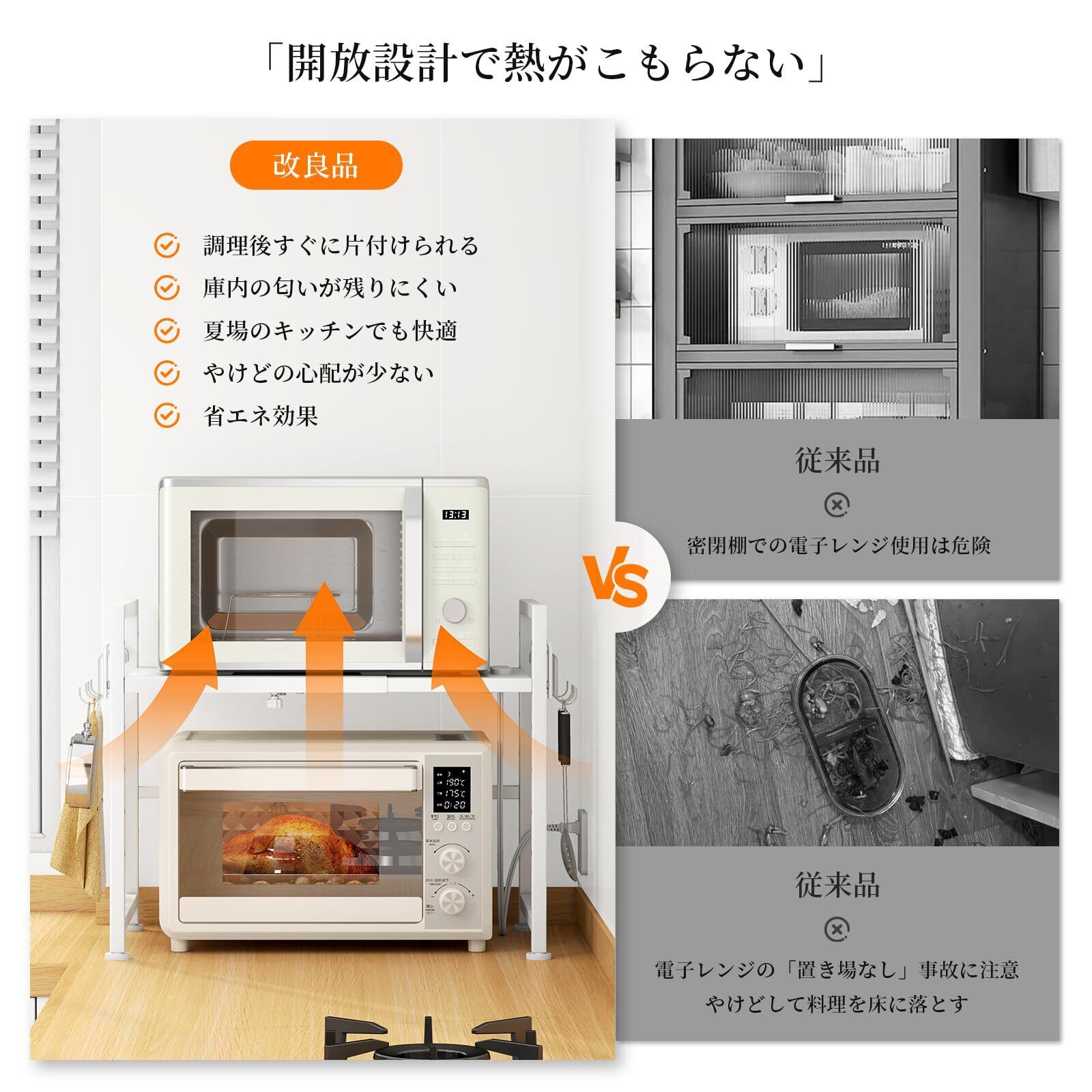✨本製品は、棚板の高さを6段階に調節できるため、お持ちの電子レンジや調理家電にぴったり合わせてご使用いただけます。無駄のない収納が可能です。