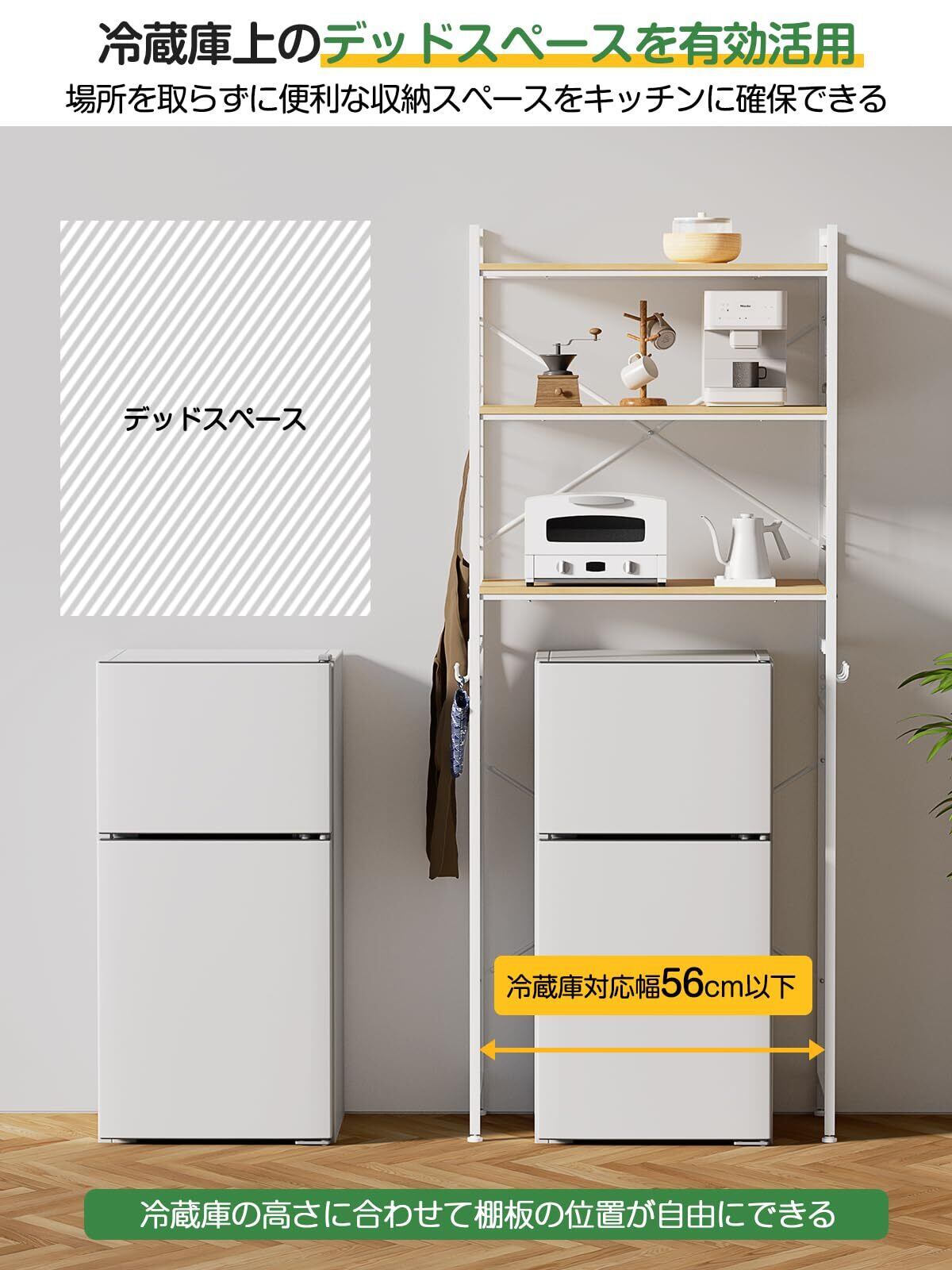 TTWO冷蔵庫ラックは、機能性とデザイン性を両立させた優れた収納アイテムです。省スペースで効率的な収納を実現し、日々の料理を快適にサポートします。