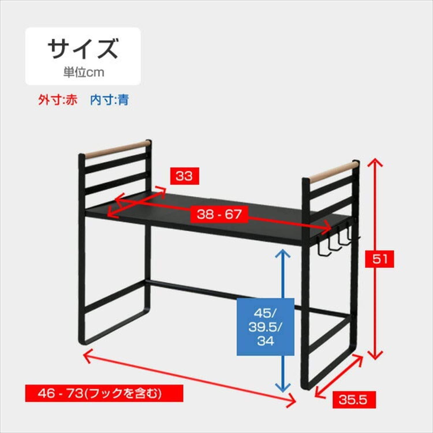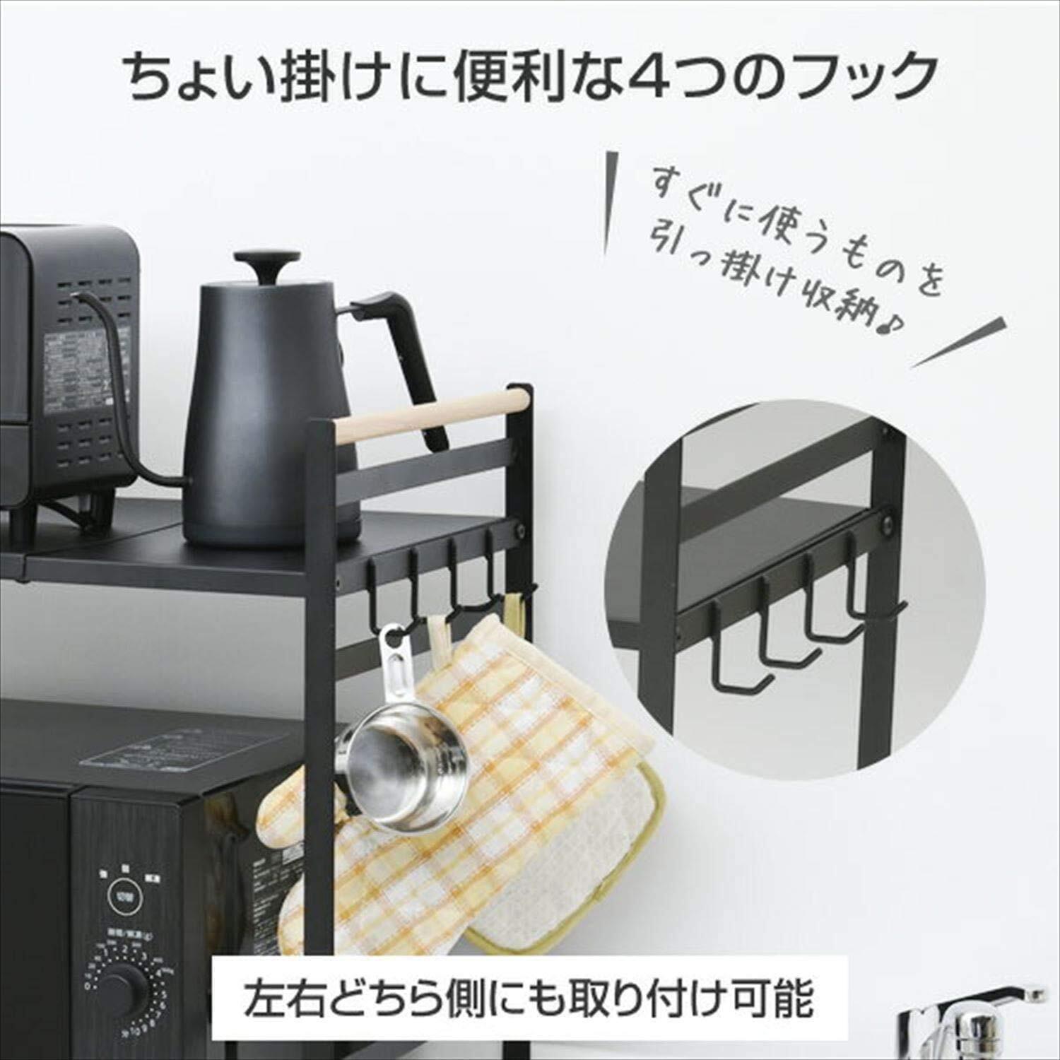 山善(YAMAZEN) レンジ上ラック (伸縮) 幅46-73×奥行35.5×高さ51cm 棚板高さ調節可 4連フック付き お客様組立品 ブラック (ツヤなし) DRR-73(SBK)