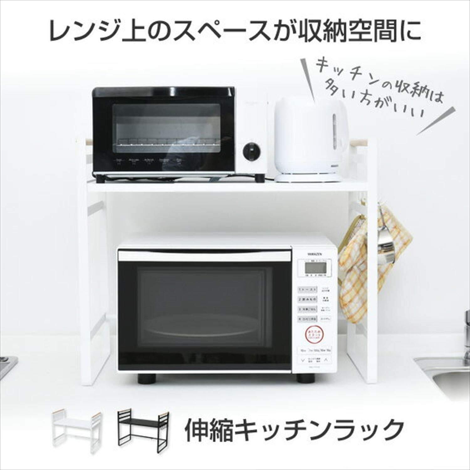 \【◆山善(YAMAZEN) レンジ上ラック (伸縮) (ブラック)】/キッチンを機能的に彩るスタイリッシュな収納アイテム!