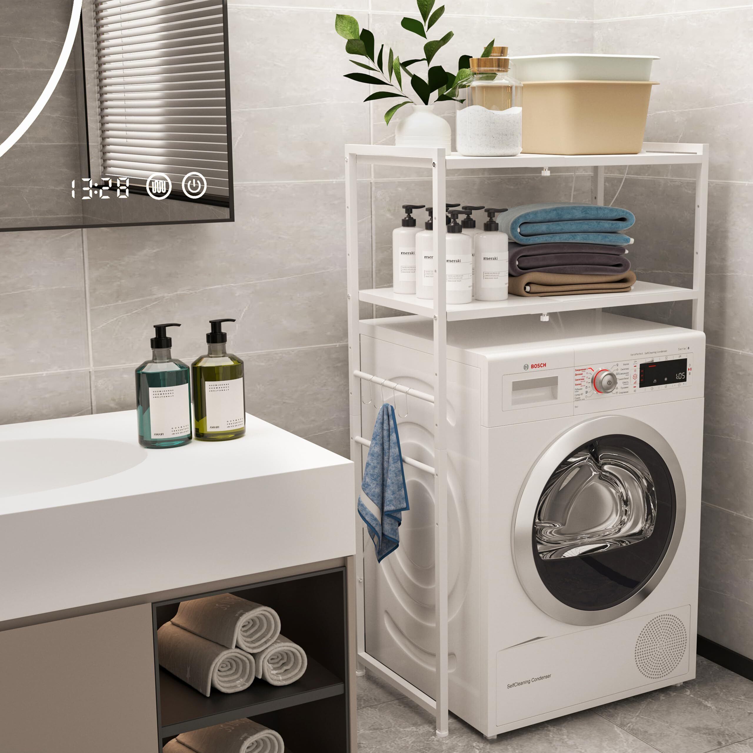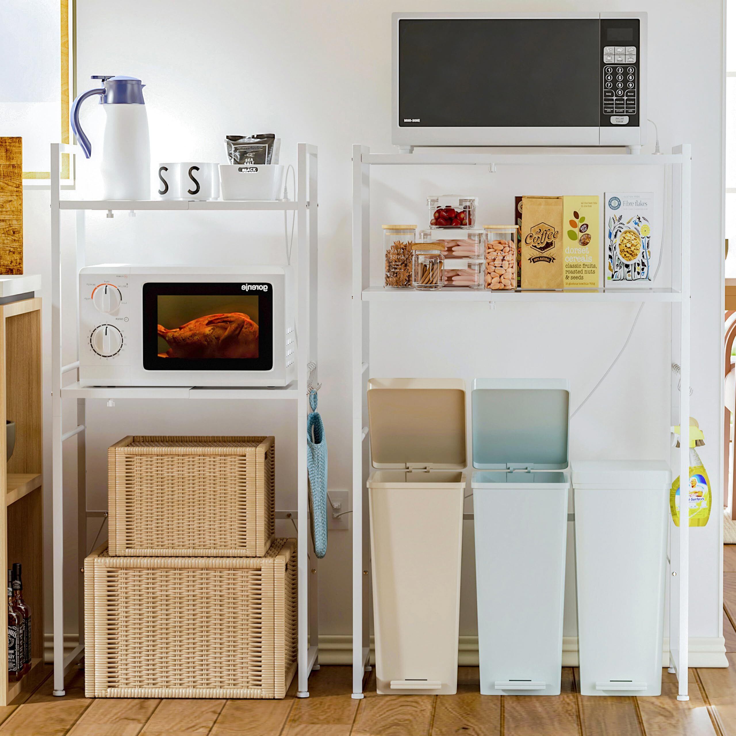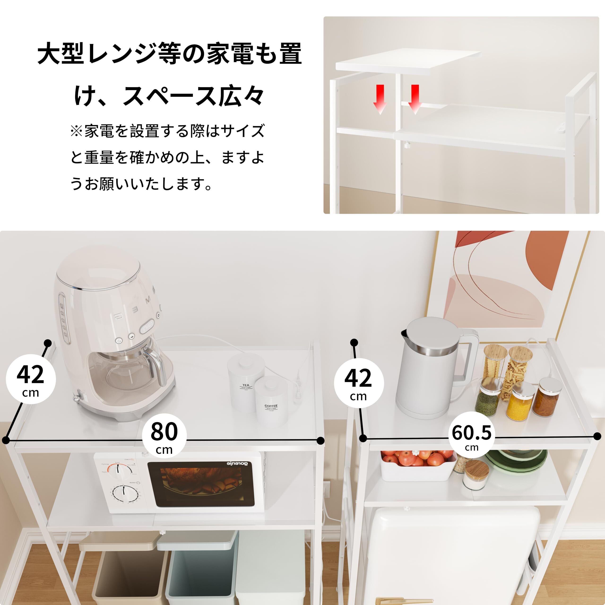 LunarLight ゴミ箱上ラック 幅60.5から-80まで*奥行42*高さ129.5cm 多機能横幅伸縮できる コンセント付きキッチンベイカーラック キッチンラック レンジ台 オーペンラック ゴミ箱収納 プリント台ラック 可動式棚板多段調整 Sフック付き 総耐荷重70kg 錆び防止 耐摩擦性 耐水性 耐熱性機能 (ホワイト)