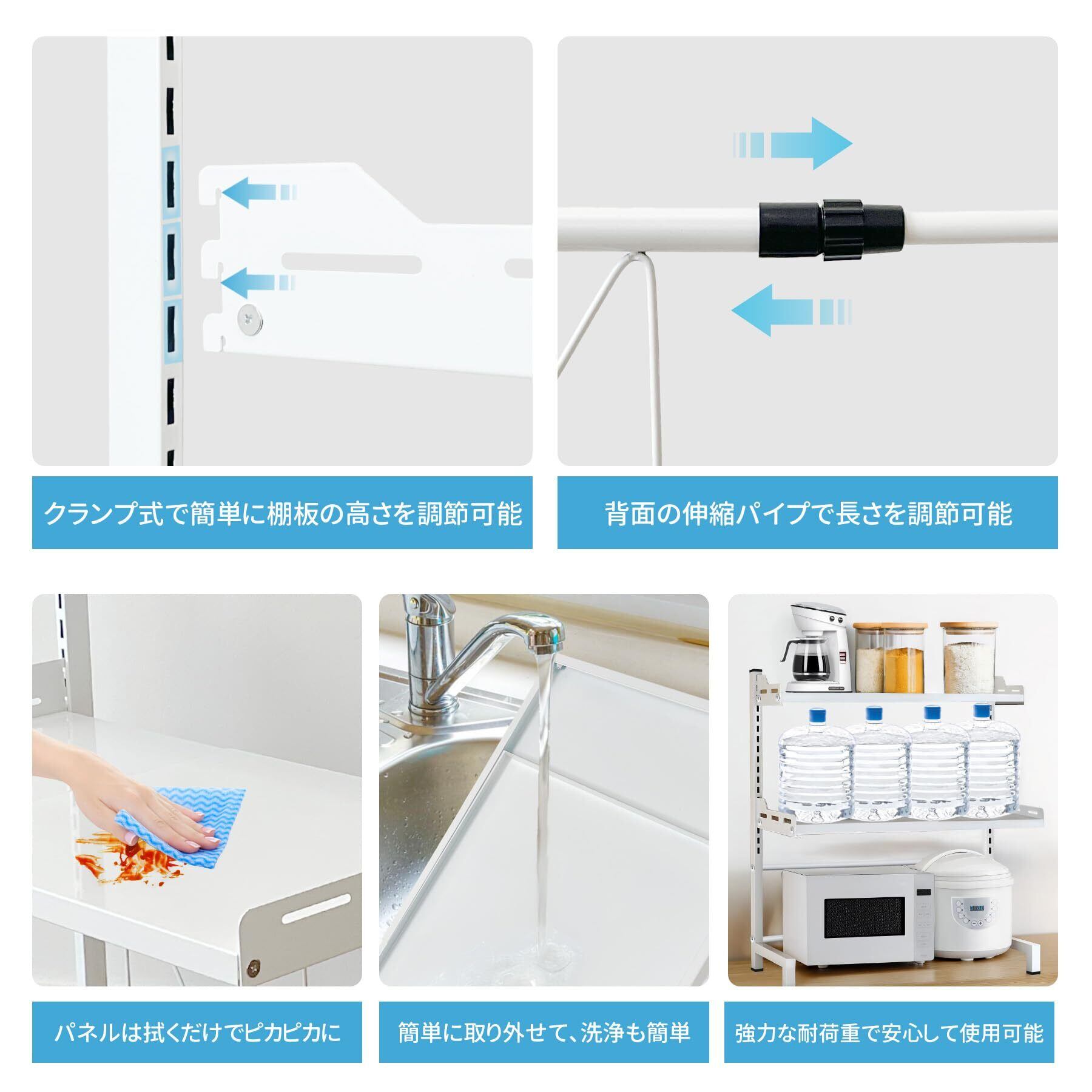 ご家庭のキッチンを快適にするために設計されたこのキッチンラックは、機能性とデザイン性を兼ね備えたアイテムです。毎日の料理がより快適で楽しいものになることをお手伝いします。