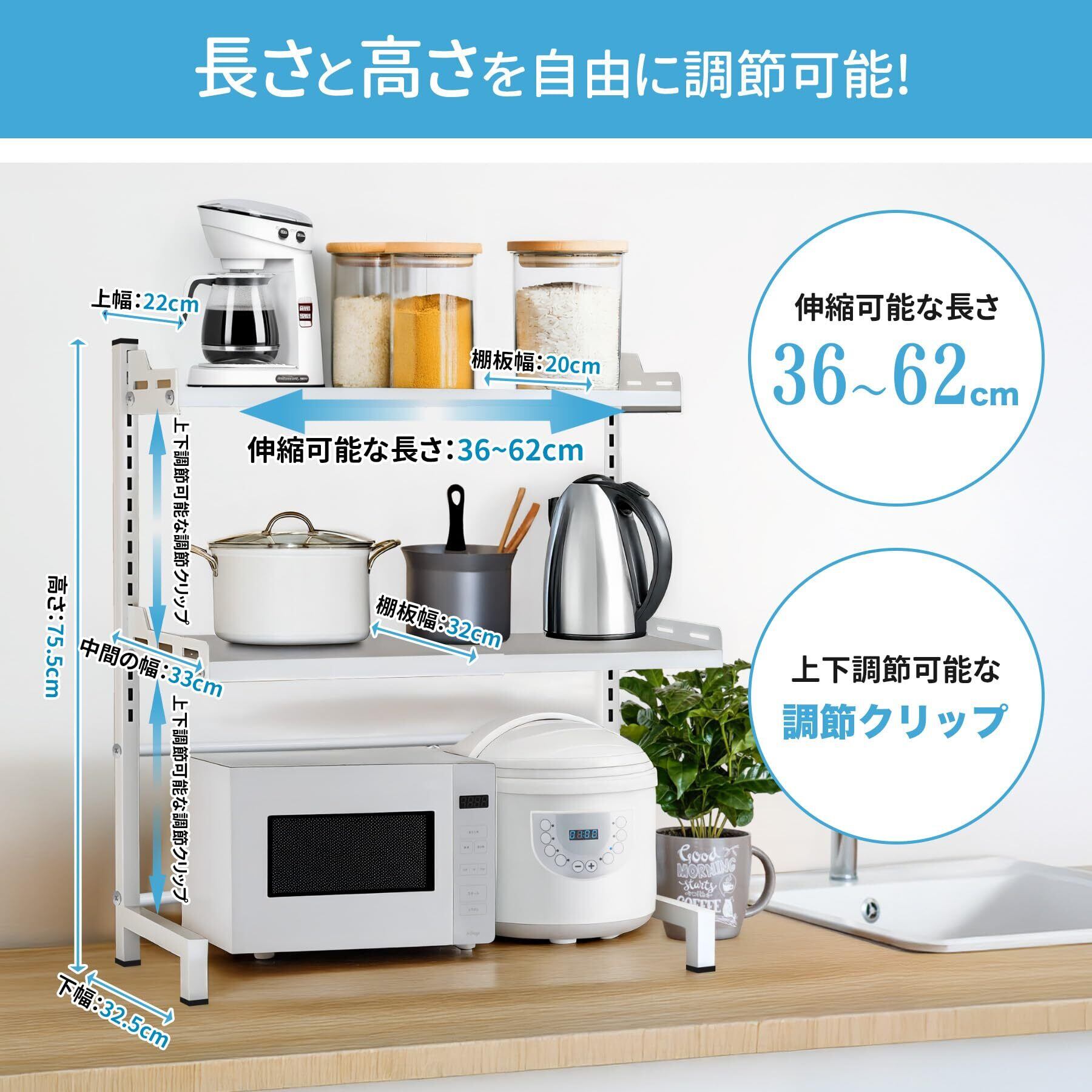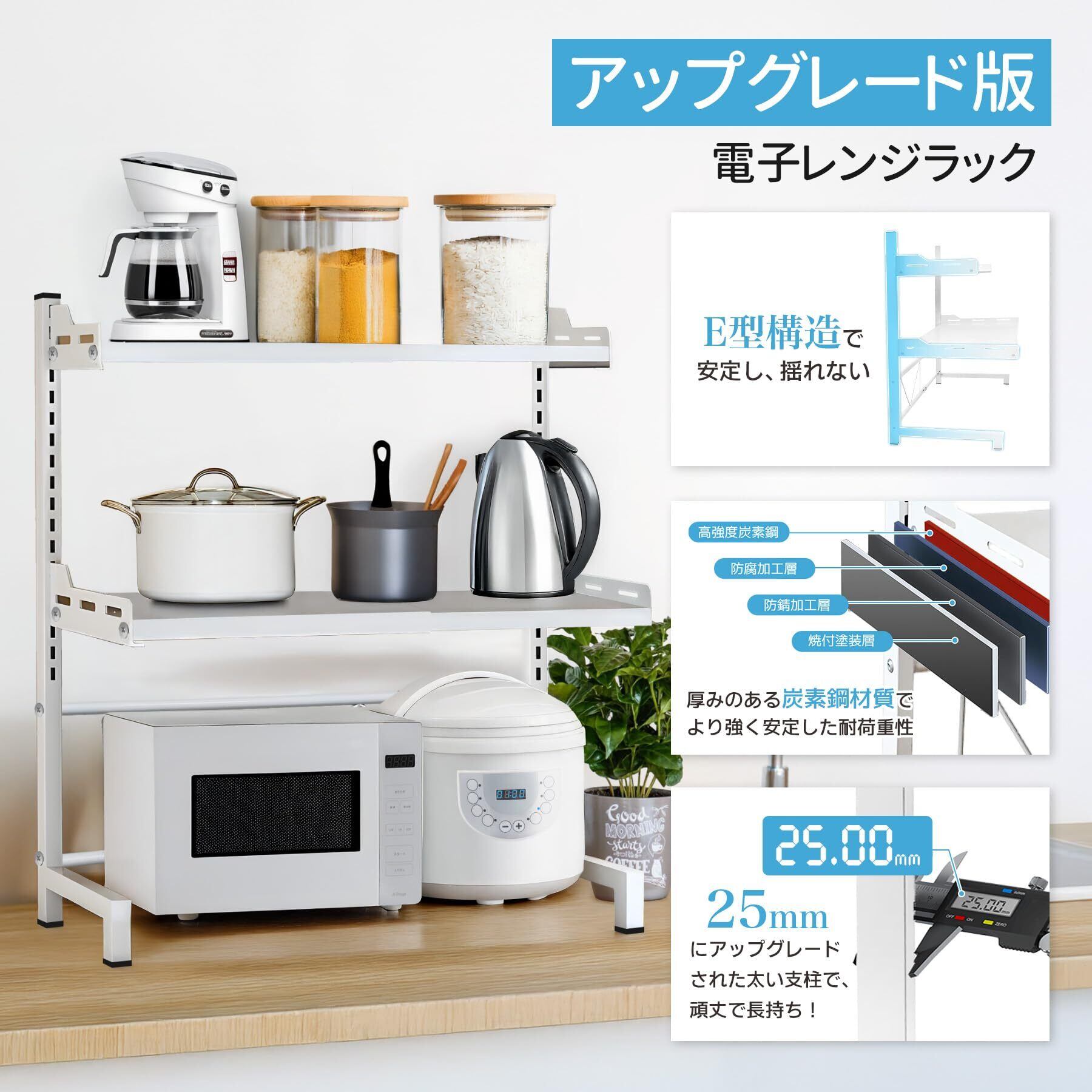 キッチンラック 3段16階調節可能な高さ設定 レンジラック E型構造 しっかり安定 厚みのある炭素鋼材 (ホワイト, 3段)