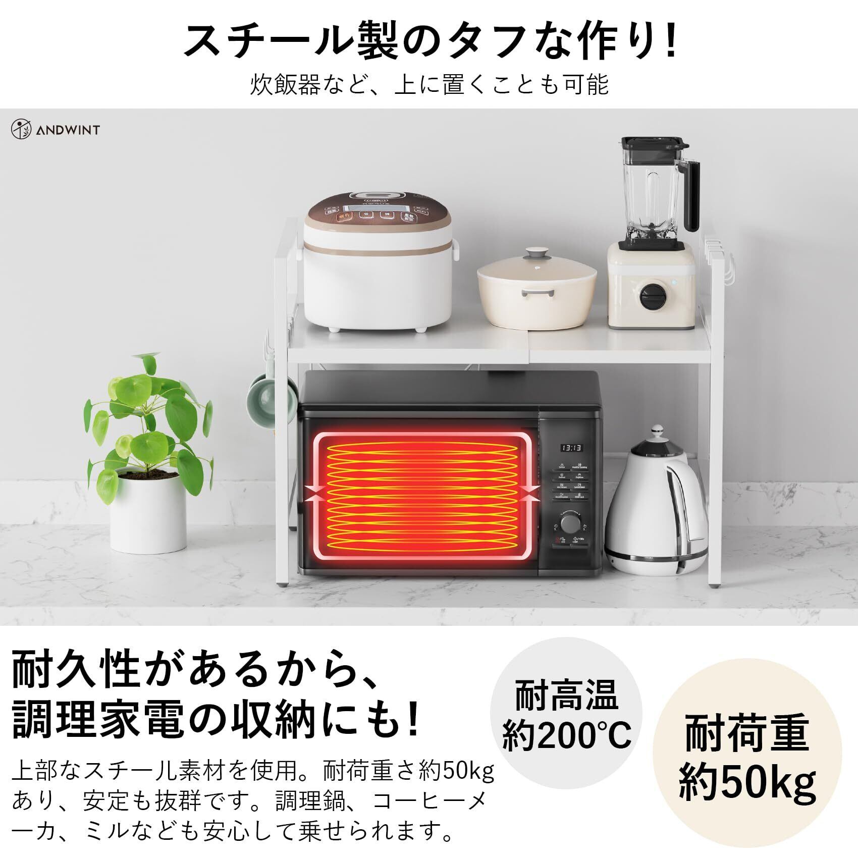 \【◆レンジラック トースターラック 伸縮式 (ホワイト)】/スマートな収納でキッチンをおしゃれに演出!