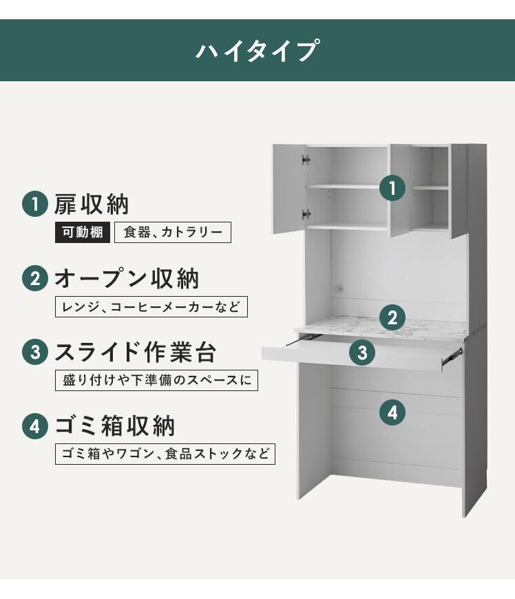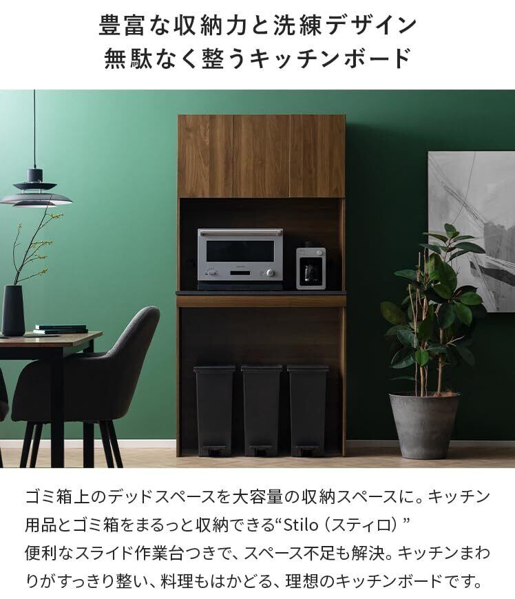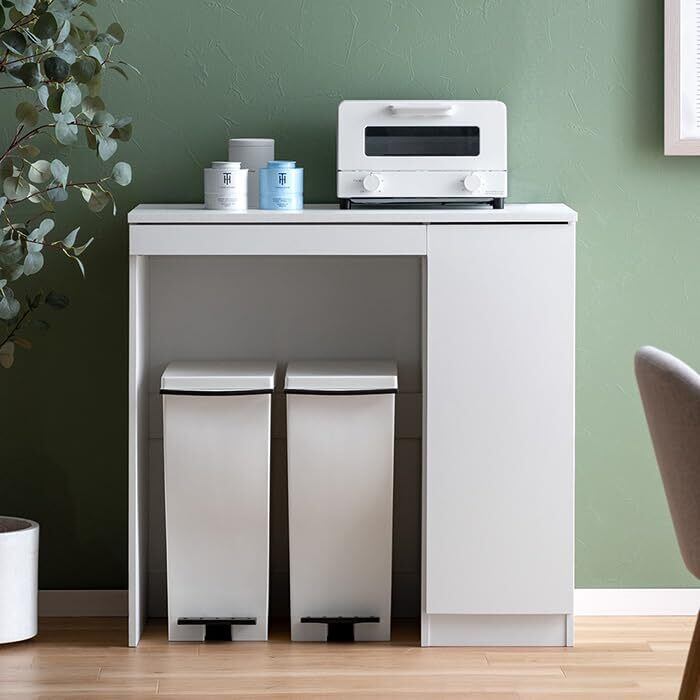 エア・リゾーム レンジ台 キッチンボード キッチンラック ゴミ箱上ラック 食器棚 ごみ箱上 ゴミ箱収納付きキッチンボード Stilo〔スティロ〕 (ホワイト×ホワイト, ロータイプ)